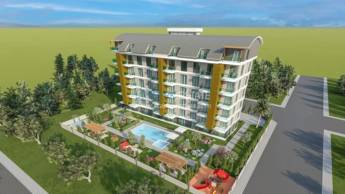 Жилой комплекс будет построен на расстоянии 1,3 км от моря в 800 метрах от центра города. Будет состоять из одного 6-этажного блока с частной охраняемой территорией. В проекте предусмотрено 48 квартир, следующих планировок: двухкомнатные 1+1 площадью 36 и 46 м2, а также дуплексы 2+1 площадью 101 и 106 м2. В стоимость уже включена полная числовая отделка, встроенный кухонный гарнитур и укомплектованные ванные комнаты.