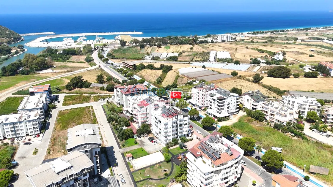 Предлагаемая квартира находится в жилом пятиэтажном турецком доме, инфраструктуры нет. Придомовая территория и подъезды ухоженные. Дом расположен на первой линии домов от моря – примерно 600 метров, около 6-7 минут пешком. Рядом с домом есть парковка, детская игровая площадка и баскетбольная. Также в шаговой доступности есть вся необходимая городская инфраструктура.