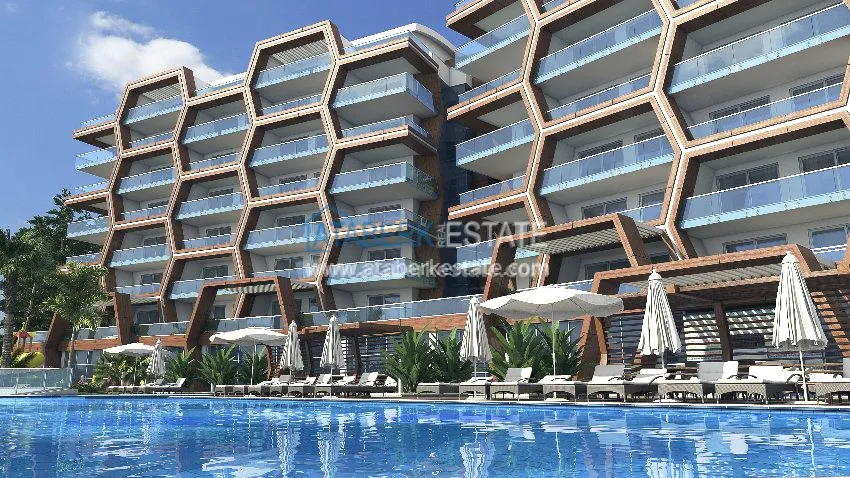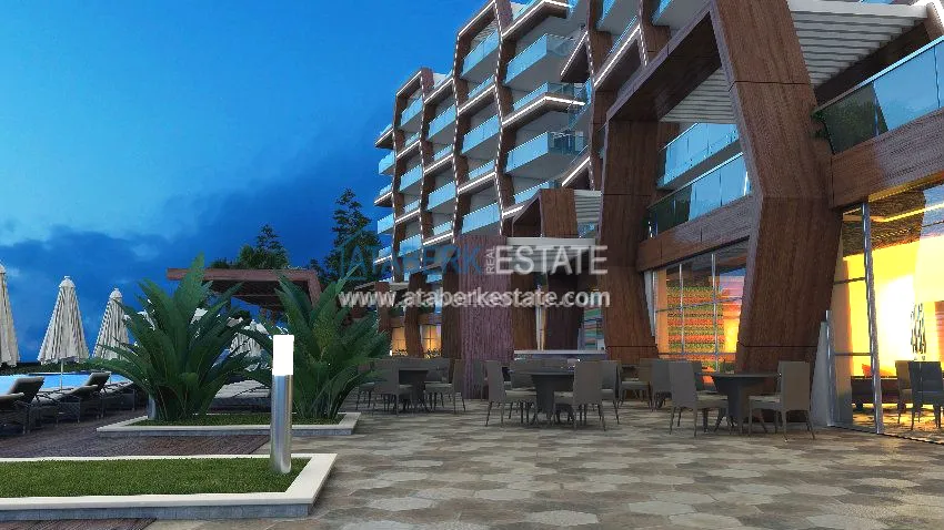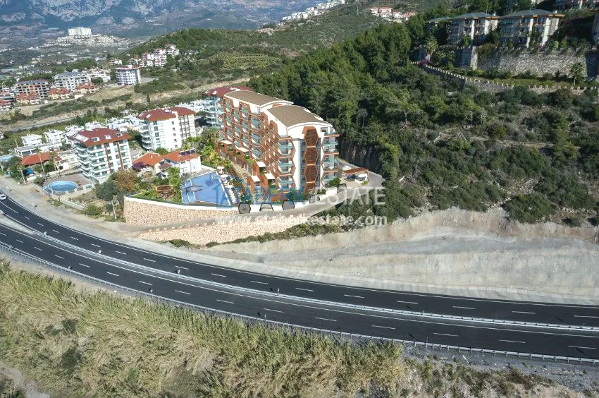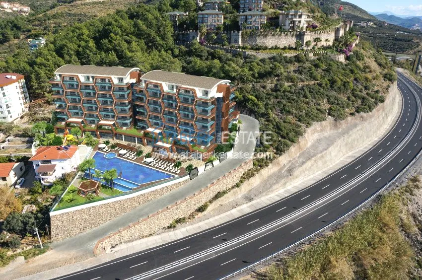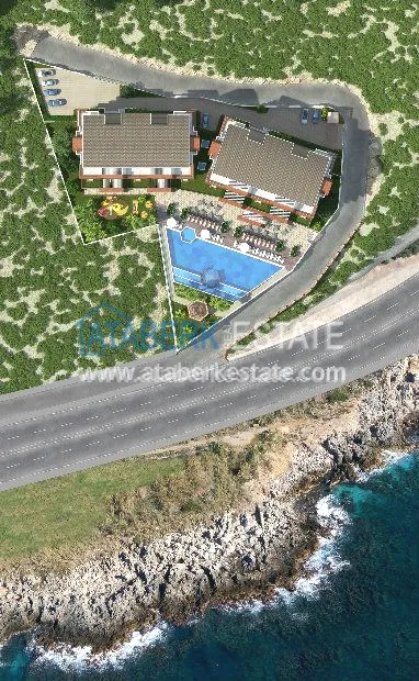 Комплекс окружен сосновым лесом, спереди прекрасное Средиземное море. Построен крупной турецкой компанией, с учетом всех новинок в строительстве. На первых этажах расположены квартиры с террасами.