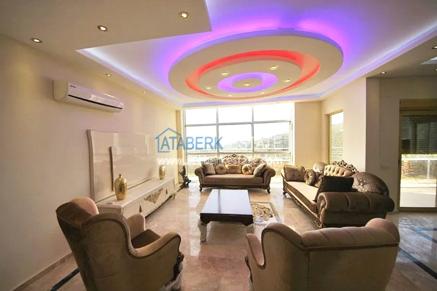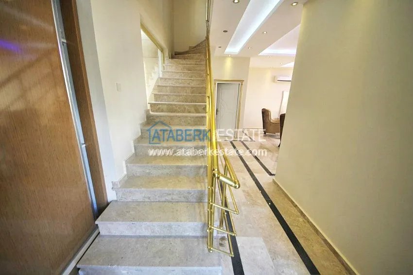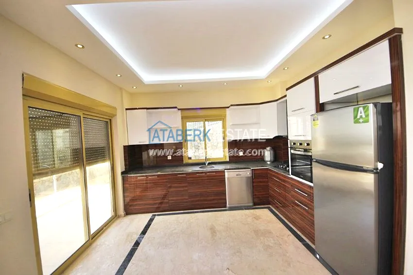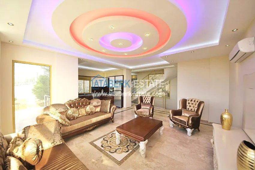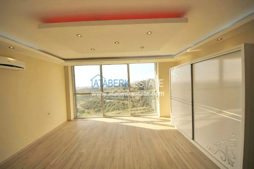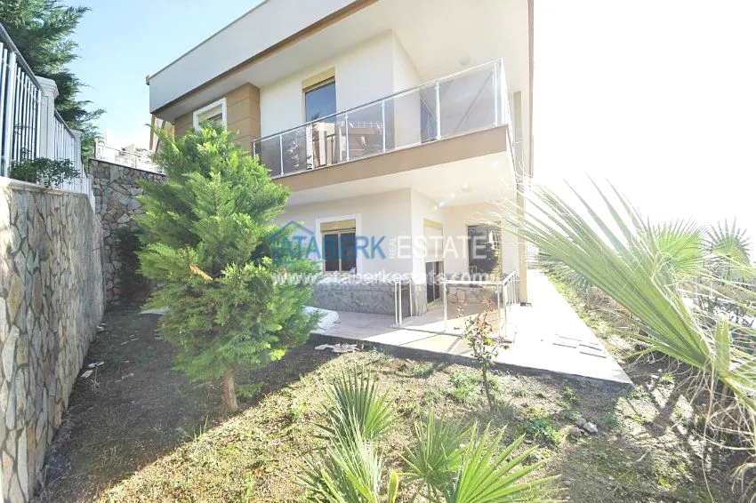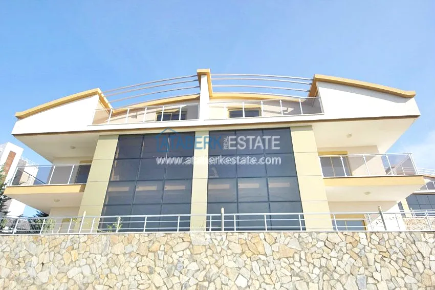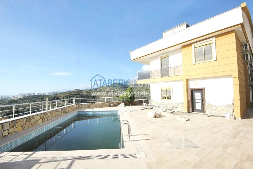 В тихом месте среди природы с красивым видом расположен дом с 4 спальнями. Вилла разделена на два хозяина, с входами с разных сторон. На закрытой территории располагается бассейн. Рядом также расположены дома и виллы, за счет удачного расположения на возвышенности с виллы открывается прекрасный вид на всю Аланию, горы Торос и Средиземное море.