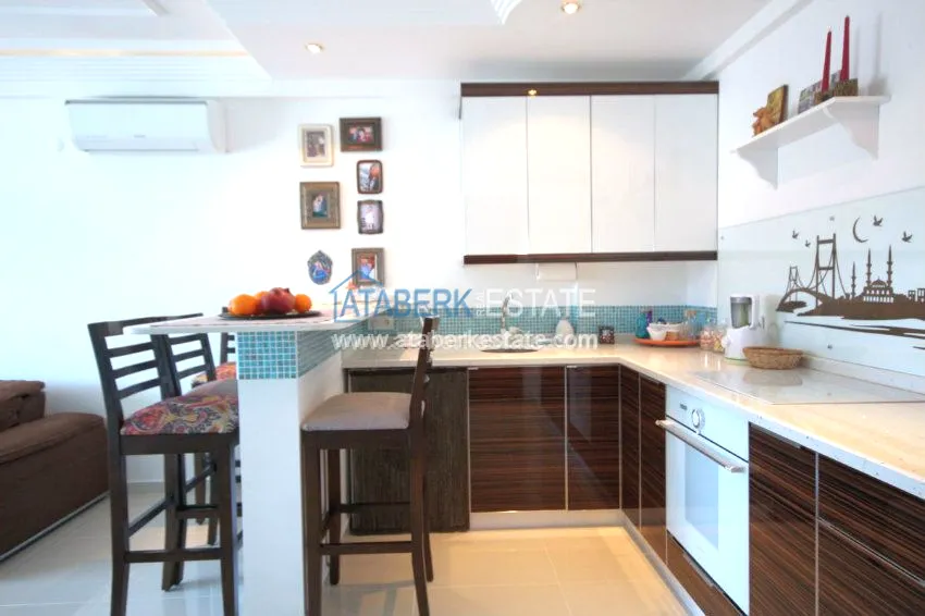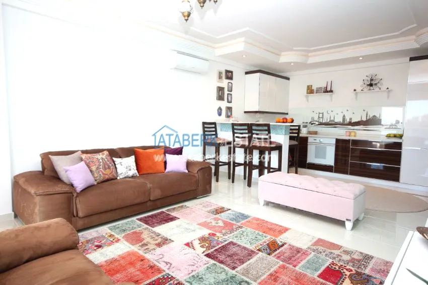 Квартира 1+1 общая площадь 65 кв. метров. Спальня, гостиная и кухня совмещены, ванная комната, балкон с шикарным видом на море. Квартира в состоянии новой с полным пакетом стильной мебели и качественной техники, как на фото. Также установлена система электрообогрева полов.