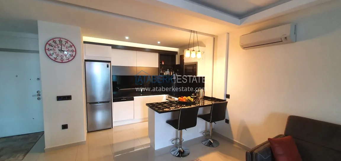 Полноценная двухкомнатная квартира с просторными комнатами, кухней американского типа и большим застекленным балконом. Дизайнерское освещение, кондиционеры в каждой комнате, укомплектованная ванная комната, мебель на балконе. В квартире много света и солнца. Из всех окон и с балкона открывается шикарный вид на Средиземное побережье. Лаконичный, но стильный интерьер подчеркивает достоинства данного предложения. Квартира расположена на 3 этаже, общая площадь составляет 65 кв. м.