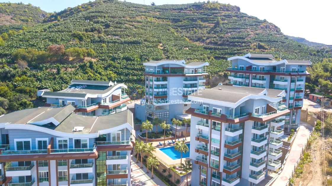 На побережье Средиземного моря в красивом, тихом, живописном районе на склоне горы с потрясающим панорамным видом на лазурное море, величественные горы и сказочную историческую крепость расположился элитный жилой комплекс с территорией в 9000 кв. м. На закрытой охраняемой территории находятся 5 блоков по 7 этажа. Обширная инфраструктура порадует как детей, так и взрослых. До побережья Средиземного моря 300 метров – 4 минуты прогулочным шагом. Айдат – 300 лир в месяц.