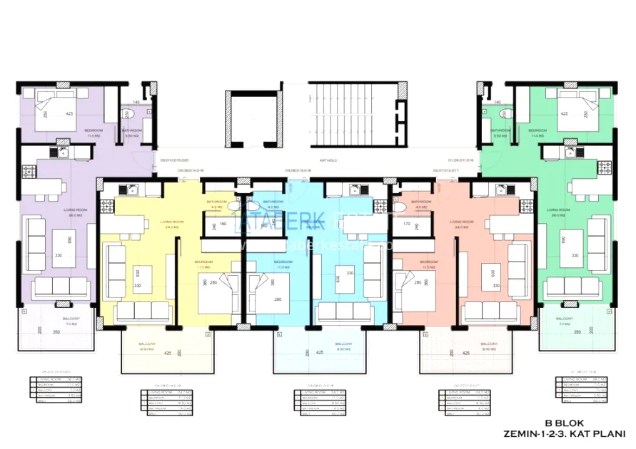 Застройщиком на продажу предложены следующие варианты планировок – двухкомнатные квартиры 1+1 площадью 50 и 52 кв. м, трехкомнатные 2+1 площадью 85 кв. м, а также двухуровневые пентхаусы планировки 2+1, 3+1 и 4+1 площадью от 100 до 175 кв. м. Все квартиры будут сдаваться с полной чистовой отделкой, укомплектованными санузлами, встроенной кухонной мебелью, а также будет установлена система кондиционирования воздуха,