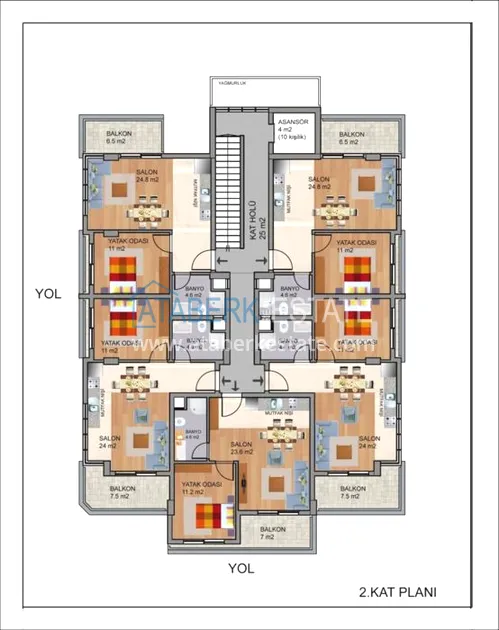 На берегу Средиземного моря, всего в 100 метрах, идет строительство комфортабельной уютной резиденции на 20 квартир. Технически комплекс будет оснащён в соответствии с высокими стандартами и иметь множество преимуществ, таких как: лучшие инженерные и коммуникационные системы, системы вентиляции и кондиционирования, витражное остекление, качественная внутренняя отделка. Общая площадь проекта 1128 м2 – 1 блок 6 этажей (4 жилых + мансарда и на первом торговая недвижимости и внутренняя инфраструктура комплекса), а также частная благоустроенная территория.