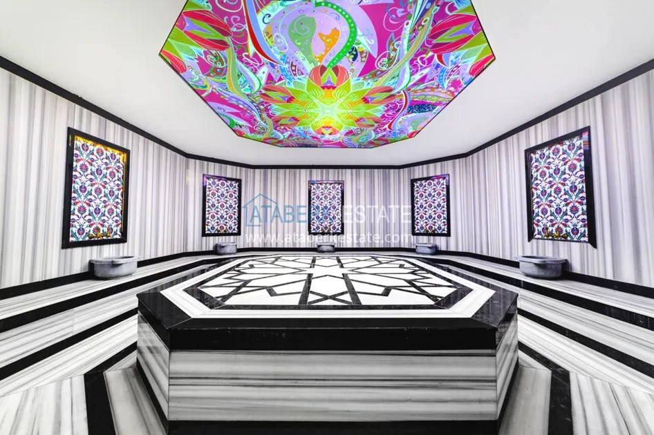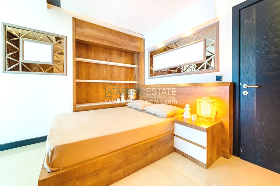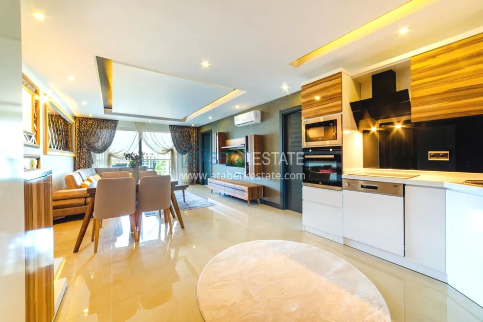 Апартаменты расположены на 1 этаже, общая площадь 90 кв. м, окна выходят на юго- запад, планировка 2+1 - гостиная, совмещенная с кухней американского типа, две спальни, ванная комната и большой балкон с выходом из всех комнат. Айдат составляет 200 лир. Квартира представлена к продаже полностью готовой для жизни, со всей мебелью и техникой.
