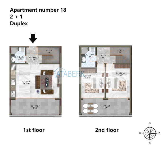 Проект отличается качеством постройки, хорошей гидроизоляцией, видовыми характеристиками (с первых этажей открывается панорама на город и море). На выбор представлены следующие планировки квартир: двухкомнатные 1+1 площадью 61 м2, трехкомнатные 2+1 от 105 до 145 м2, садовые дуплексы 3+1 площадью 200 м2 + сад 10-15 м2 и живая изгородь, а также двухуровневые пентхаусы с сауной 40 площадью 214 м2. Апартаменты будут сданы с полной чистовой отделкой. В стоимость включено: стальная входная дверь, встроенная кухонная мебель, полный комплект сантехники в ванных комнатах, а также будет подключен интернет и кабельное TV.