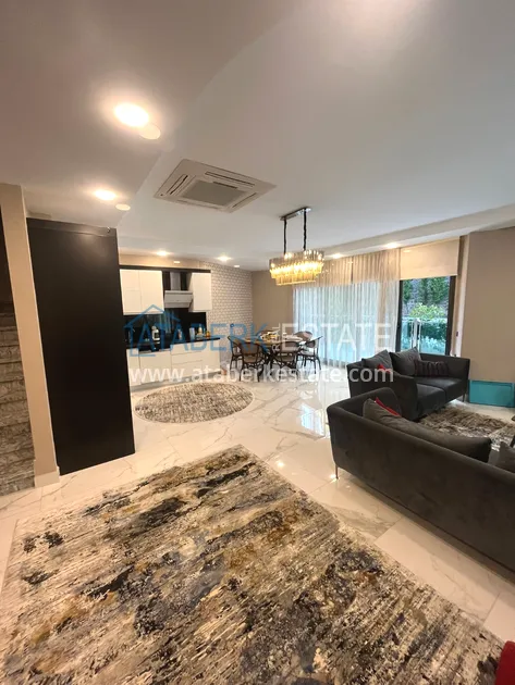 Квартира планировки 3+1 находится на двух первых этажах здания, общая площадь составляет 180 м2. На данной площади разместились: гостиная, совмещённая с кухней открытого плана, три спальни, три ванные комнаты, сауна, прачечная, а также два балкона и терраса. Продаётся в том виде в каком представлено на фото.