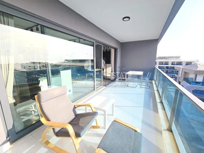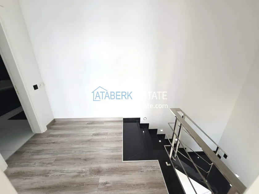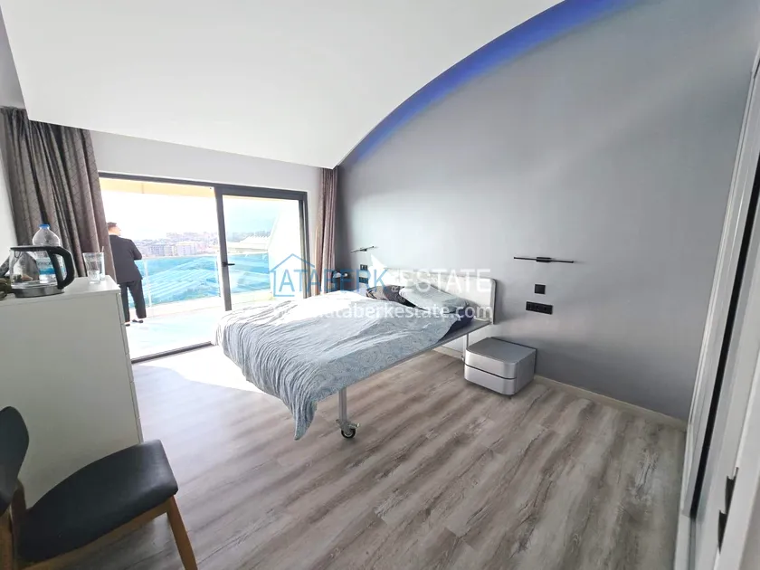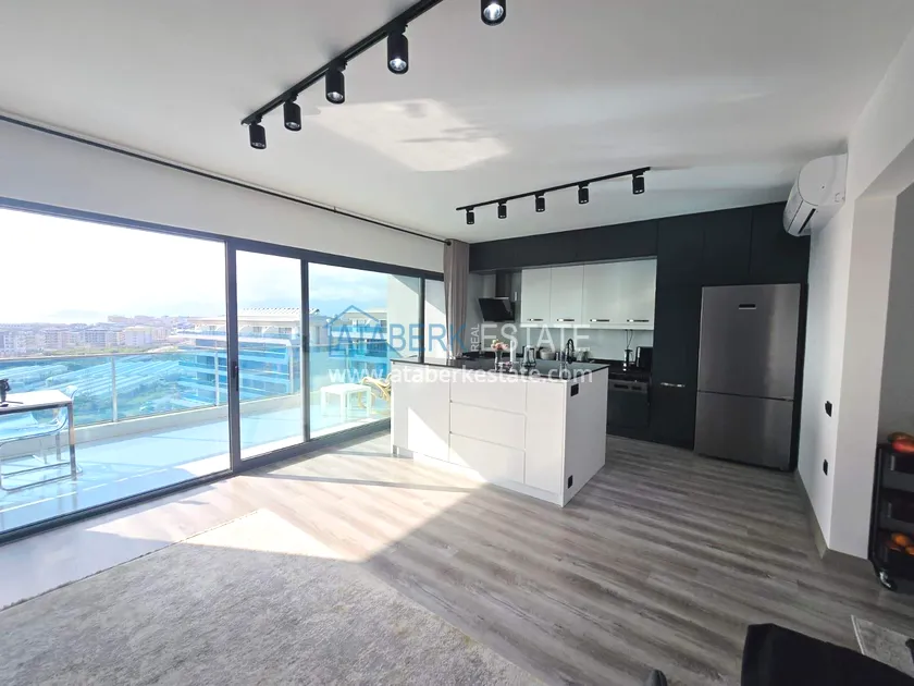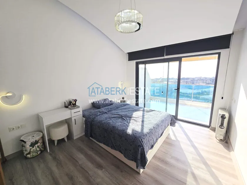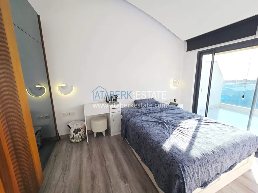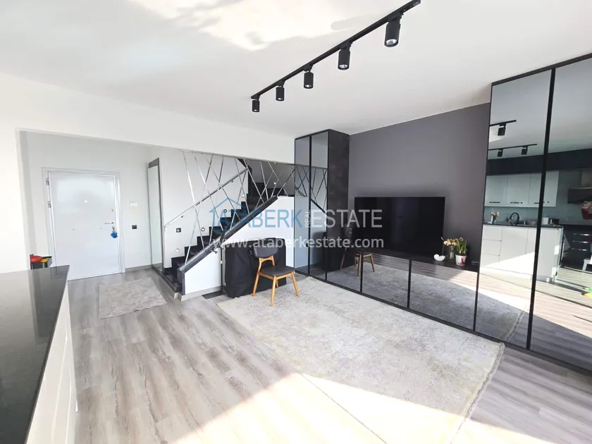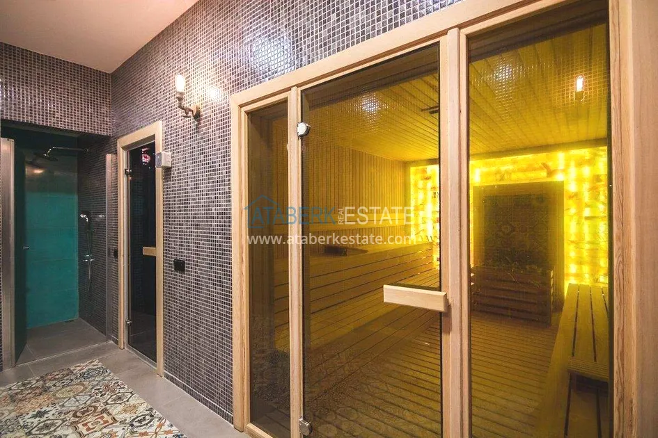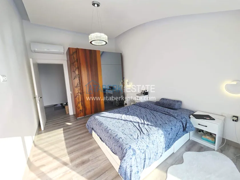 Двухуровневая квартира общей площадью 147 м². В планировке 2+1 предусмотрены просторная гостиная с кухонной зоной, две спальни, два санузла и два больших видовых балкона. На втором уровне расположена терраса с солнцезащитным раздвижным навесом - идеальное пространство для отдыха в любое время дня. В одном из санузлов установлен джакузи. Для дополнительного комфорта предусмотрен подогрев полов в ванных комнатах, электрические полотенцесушители и качественное алюминиевое остекление. Квартира полностью меблирована в люкс-формате: вся мебель, включая кухонный гарнитур, выполнена на заказ с акцентом на качество, эстетику и функциональность. Главное преимущество объекта - впечатляющие панорамные виды на море, горы, крепость Кале, город и окружающие пейзажи. По видовым характеристикам квартира считается одной из лучших в комплексе.