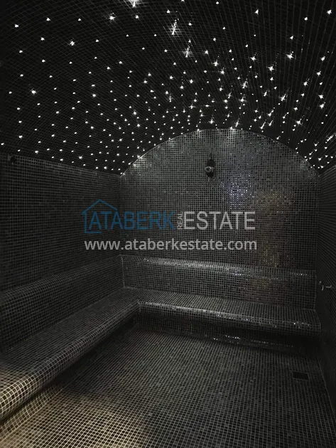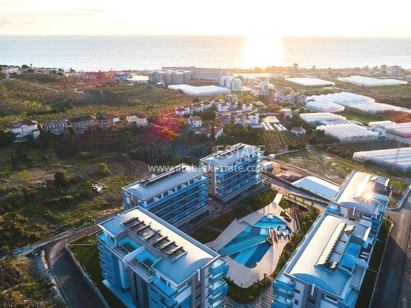 Комплекс премиум-класса состоит из пяти пятиэтажных блоков, выполнен в современной архитектурной концепции и располагает инфраструктурой уровня пятизвёздочного отеля. Закрытая ухоженная территория, широкий выбор удобств и профессиональное управление делают проживание здесь максимально комфортным. Айдат составляет 2 500 лир в месяц. До моря около 10 минут пешком.