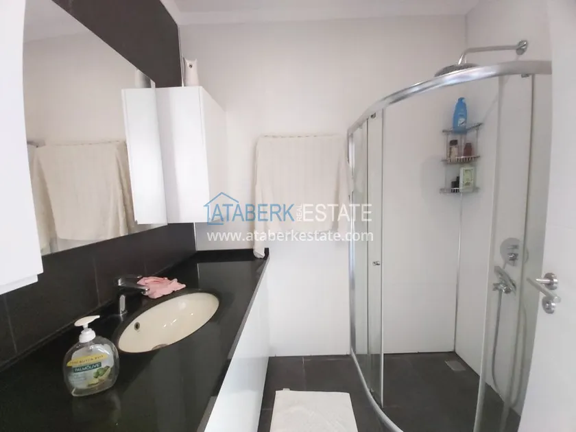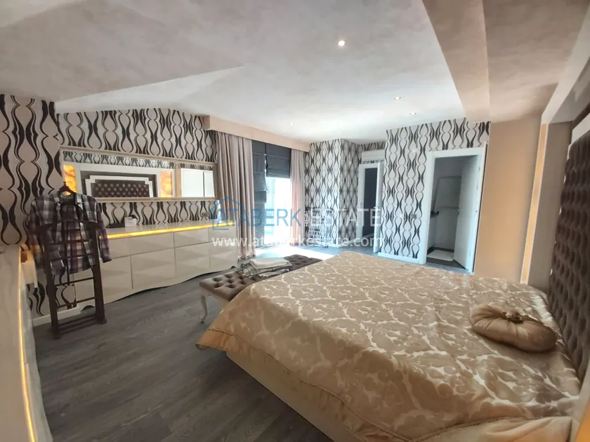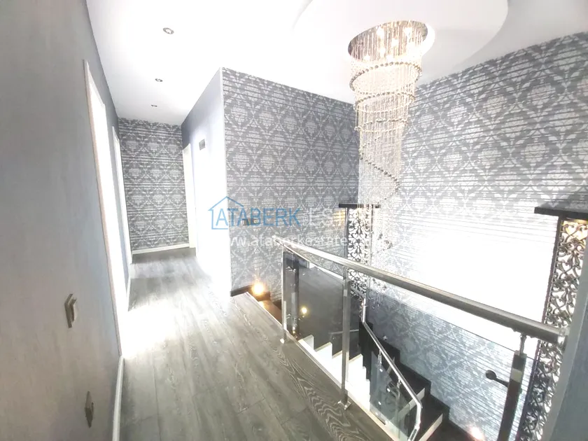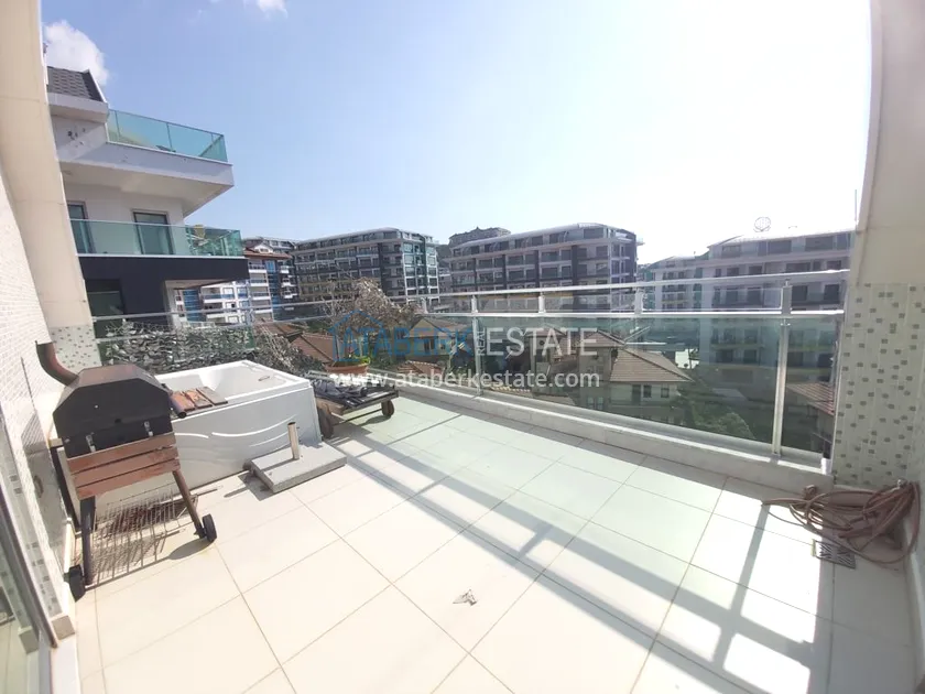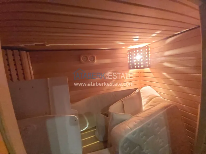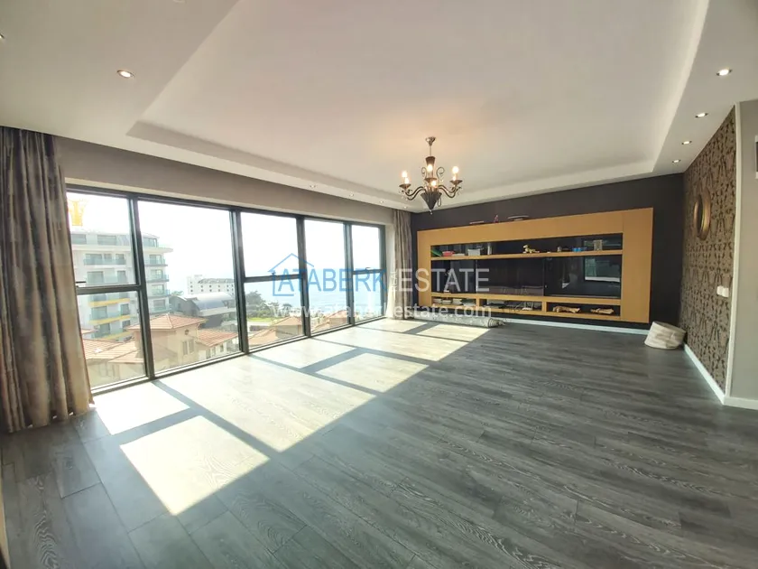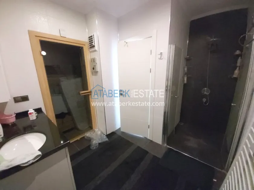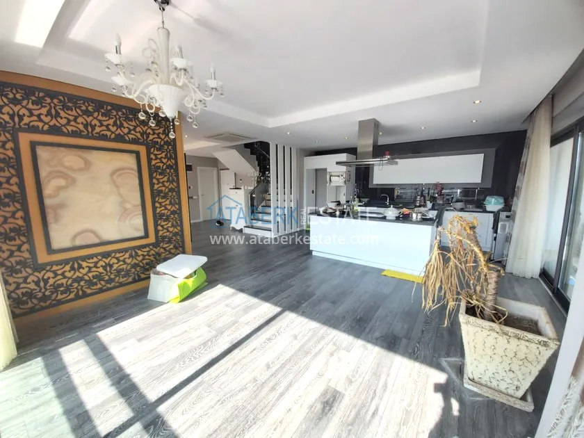 Четырехкомнатные апартаменты занимают два верхних этажа дома, общая площадь составляет 230 м2, имеют планировку 3+1 - гостиная, американского типа кухня, 3 спальни, 2 санузла, личная сауна, джакузи, а также балкон и просторная терраса. Квартира выставлена на продажу в том виде, в котором представлена на фото.