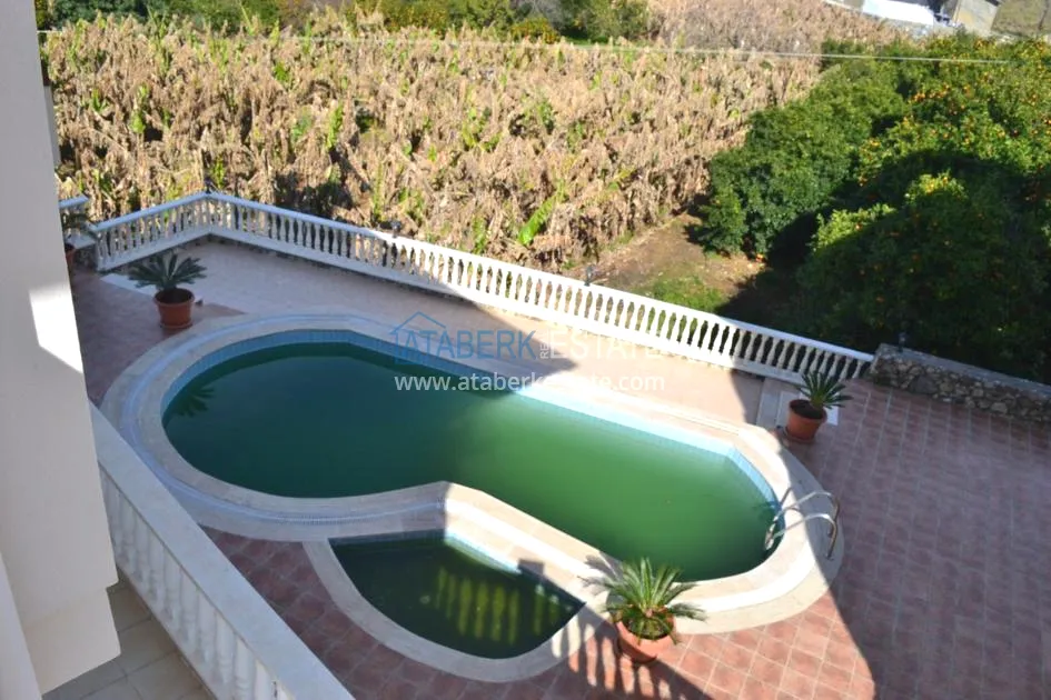 С виллы открывается живописный вид на природу и горы Алании, в доме предусмотрена просторная планировка- 4 спальни, 2 зала, большая терраса на последнем этаже. Также есть свой сад и личный гараж. В доме установлена система безопасности, есть спутниковое телевидение.