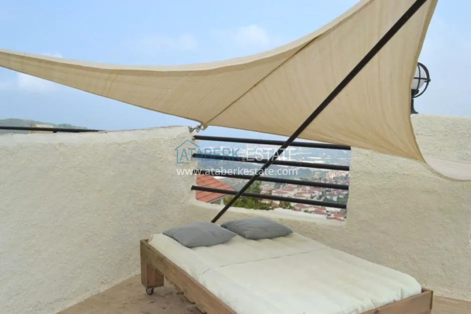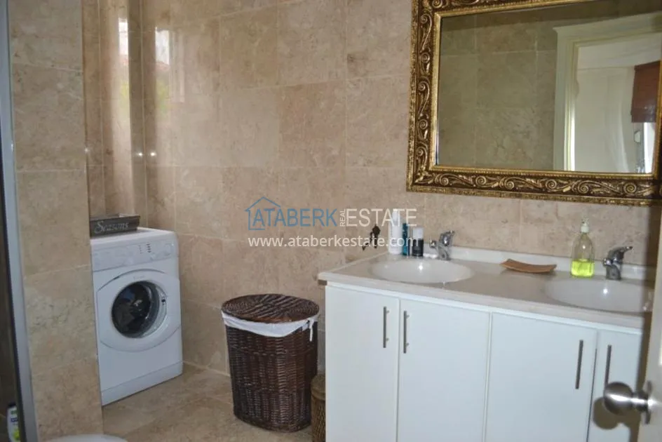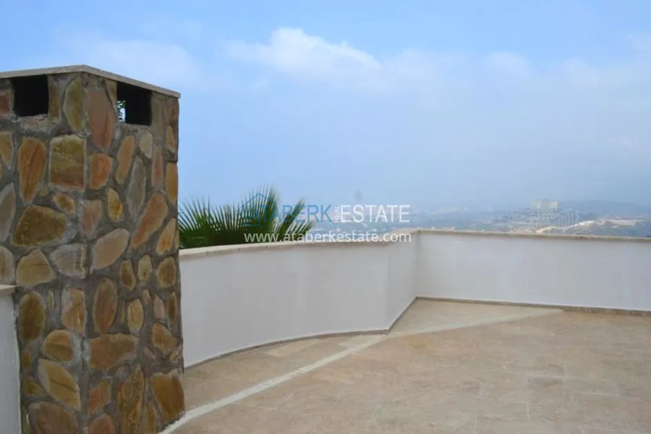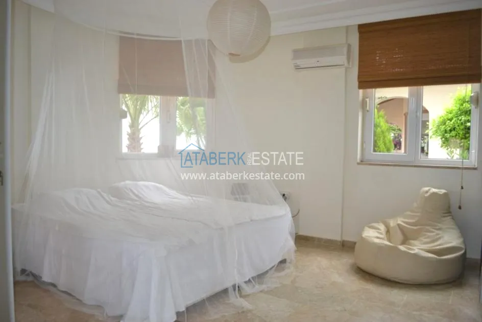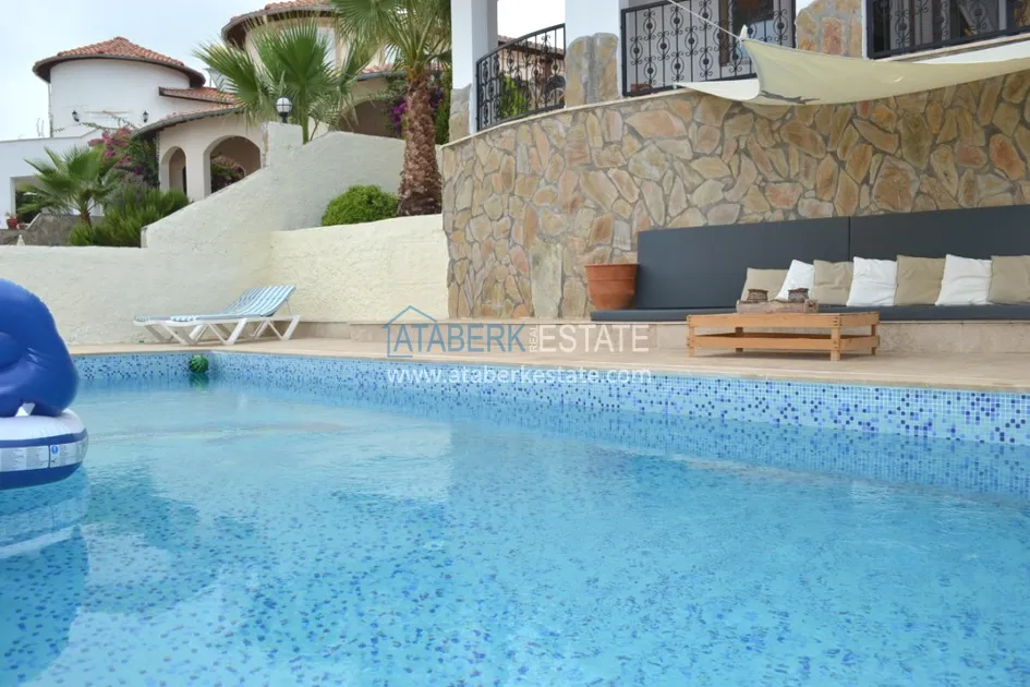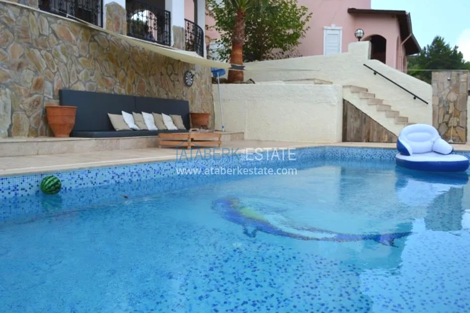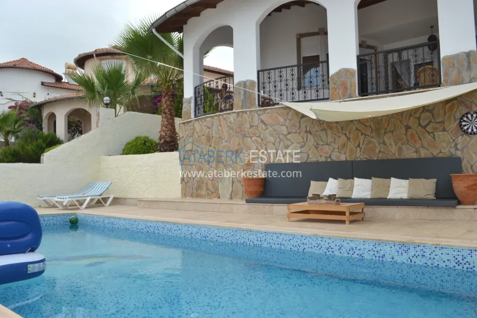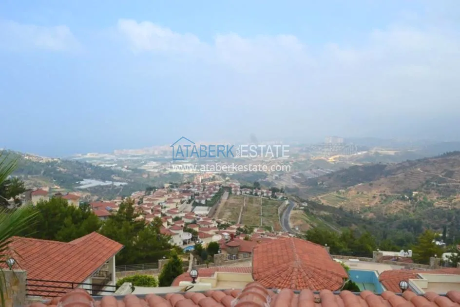 В тихом месте среди природы с красивым видом расположен дом с 4 спальнями. Вилла отдельно стоящая, и на территории располагается личный бассейн, закрытый гараж, сад. Рядом также расположены дома и виллы, за счет удачного расположения на возвышенности с виллы открывается прекрасный вид на всю Аланию и Средиземное море.