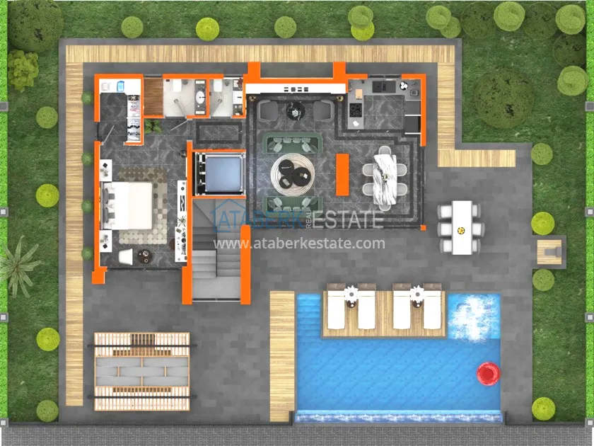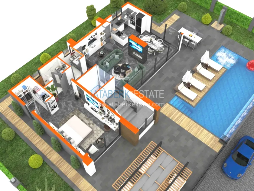 Представлены коттеджи планировки 3+1, 4+1 и 5+1, общей площадь от 309,5 до 377,6 кв. м. У каждой виллы частный бассейн с подогревом, сад с автоматической системой полива, крытый гараж с автоматической системой открытия ворот, система охраны (сигнализация, видеокамеры), система централизованного управления, центральная система отопления и охлаждения, генератор, встроенный сейф, гидроизоляция. Все виллы подходят для получения гражданства.