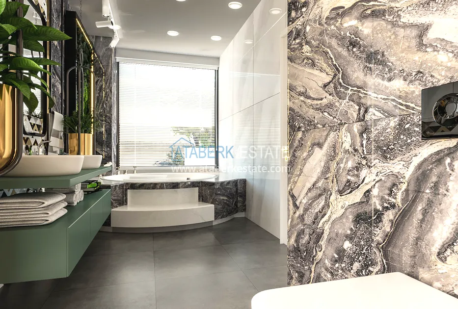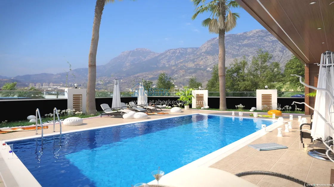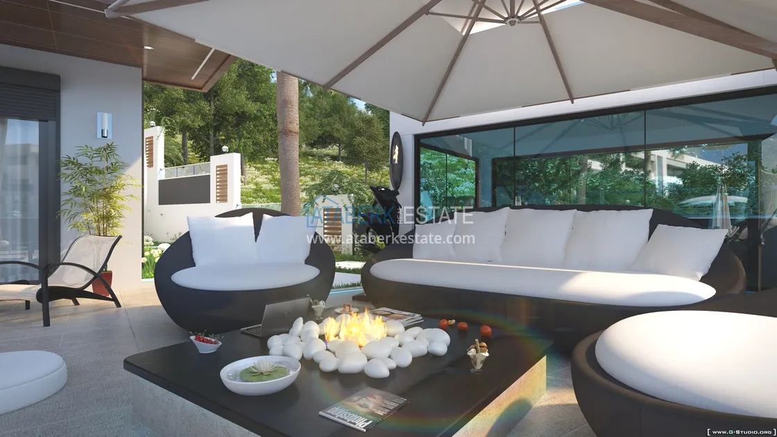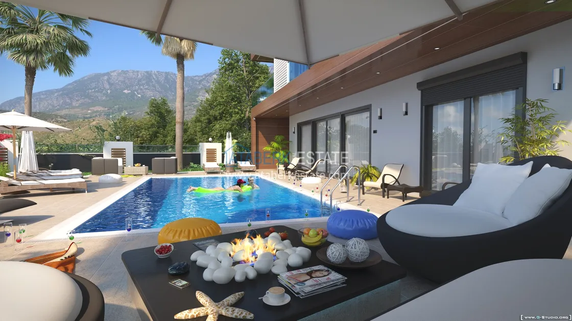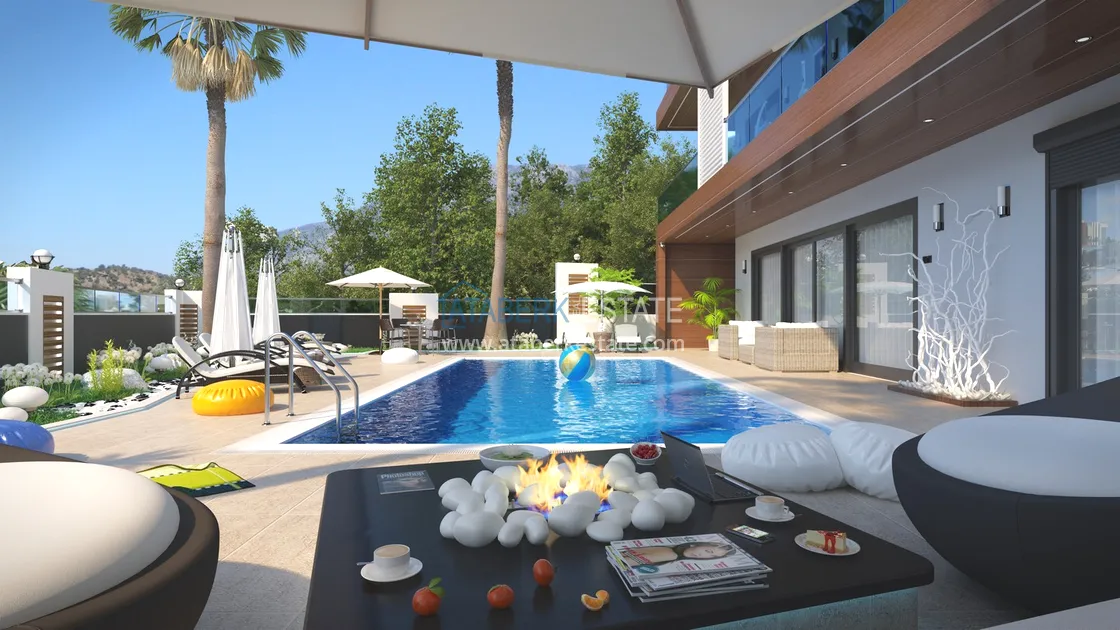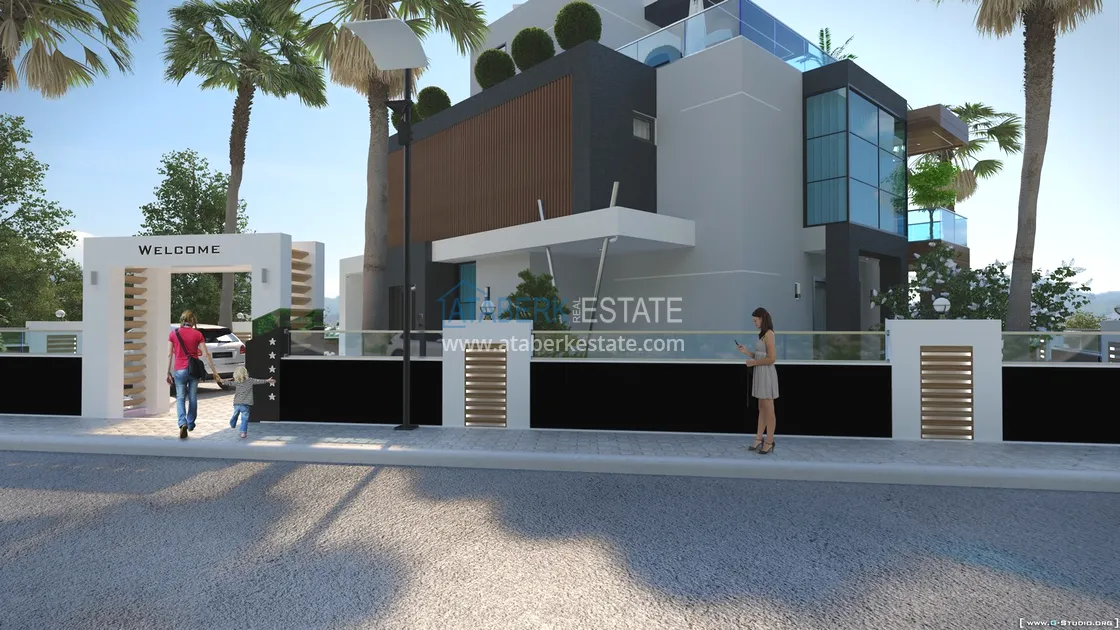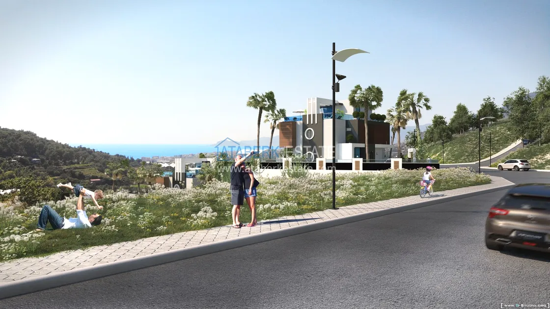 Комплекс включает в себя 4 индивидуальные виллы, каждая со своей территорией в 550 м2, личным бассейном и парковкой. Все виллы видовые, имеют 3 этажа, планировку 5+1 и жилую площадь в 240 м2. Данная планировка предусматривает наличие 5 спальных комнат, гостиной, совмещенной с кухней открытого плана, несколько ванных комнат, а также балконов с роскошными панорамными видами на зеленные окрестности, горы и море. Недвижимость будет сдаваться с полной чистовой отделкой, укомплектованными санузлами, всторенной кухонной мебелью, также будут проведены все коммуникации и полностью установлена вся сантехника.