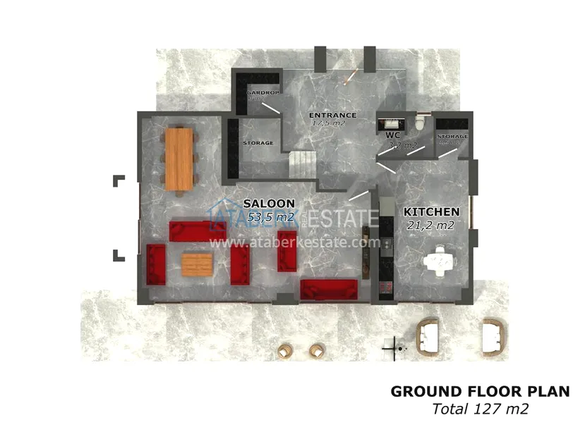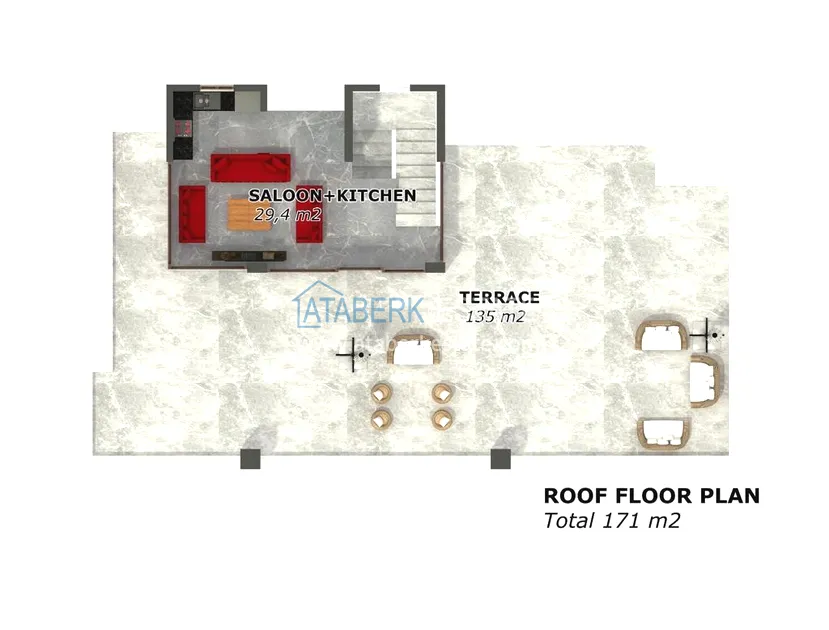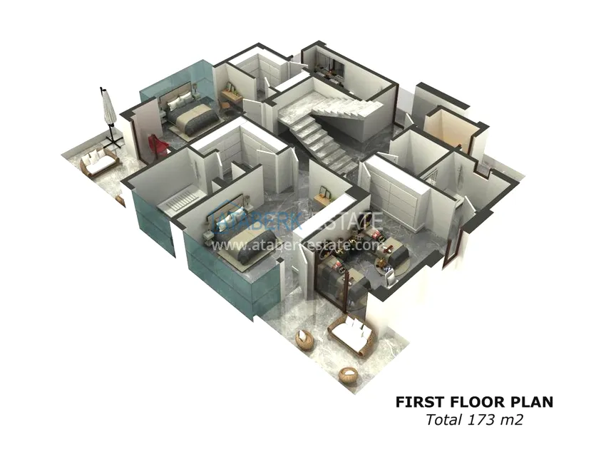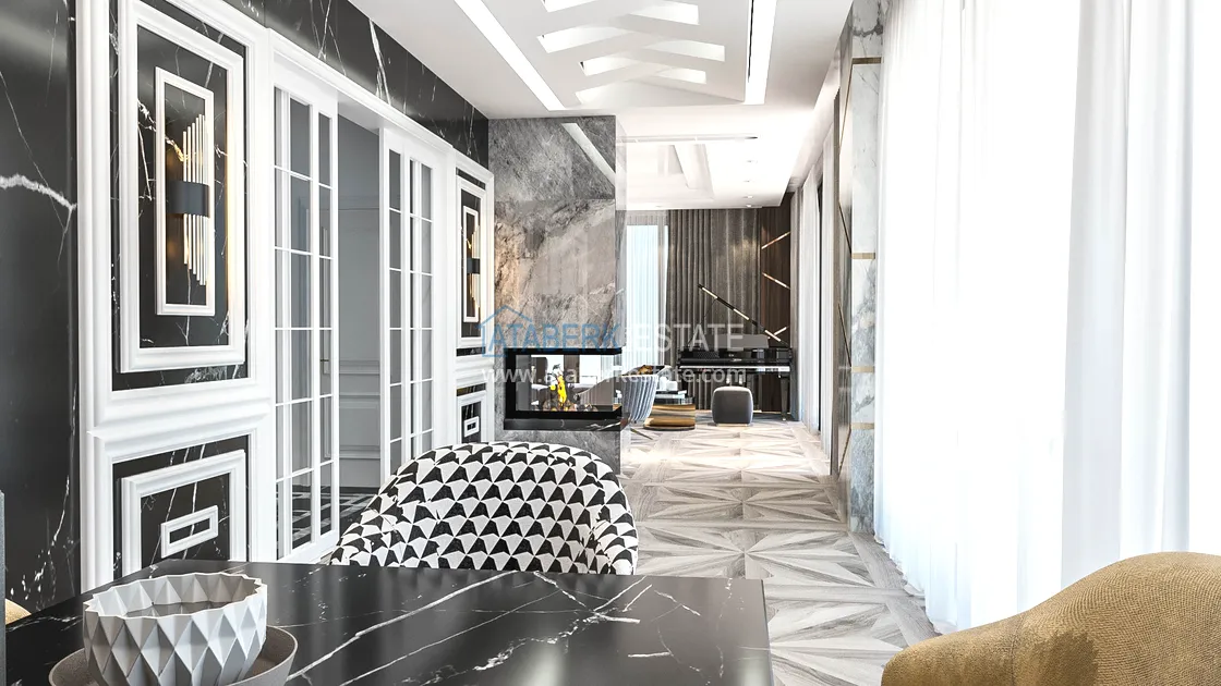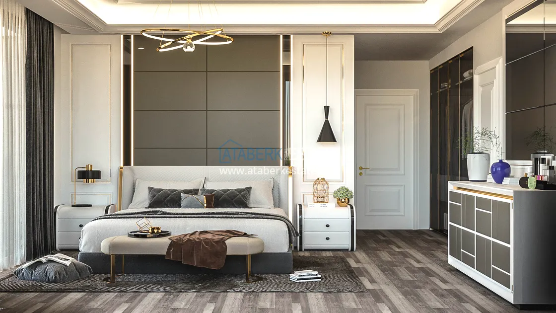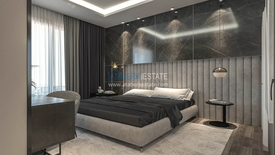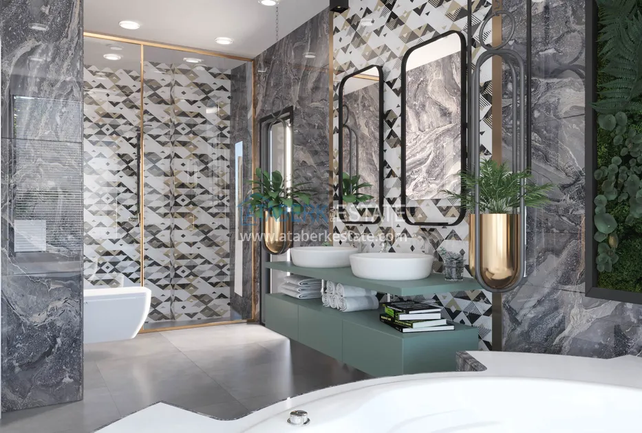 Комплекс включает в себя 4 индивидуальные виллы, каждая со своей территорией в 550 м2, личным бассейном и парковкой. Все виллы видовые, имеют 3 этажа, планировку 5+1 и жилую площадь в 240 м2. Данная планировка предусматривает наличие 5 спальных комнат, гостиной, совмещенной с кухней открытого плана, несколько ванных комнат, а также балконов с роскошными панорамными видами на зеленные окрестности, горы и море. Недвижимость будет сдаваться с полной чистовой отделкой, укомплектованными санузлами, всторенной кухонной мебелью, также будут проведены все коммуникации и полностью установлена вся сантехника.