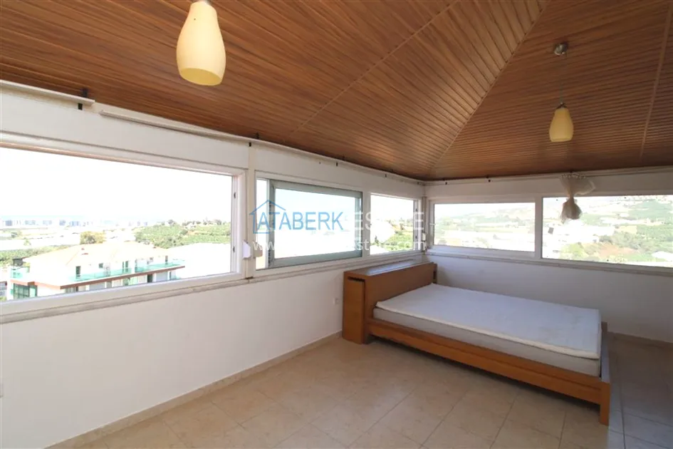 На продажу выставлена одна из частей смежной трехэтажной виллы с красивым панорамным видом в живописной горной местности района Каргыджак – Алания.