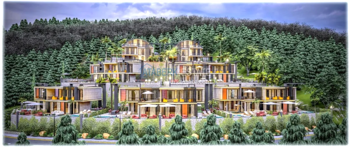 Проект относиться к категории недвижимости премиум-класса, расположен на вершине холма между фокусами величественных гор Торос и Средиземным морем. Обстановка абсолютного спокойствия, с непрерывным панорамным видом.
