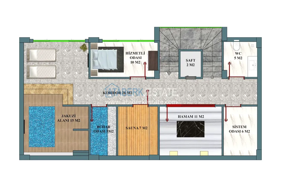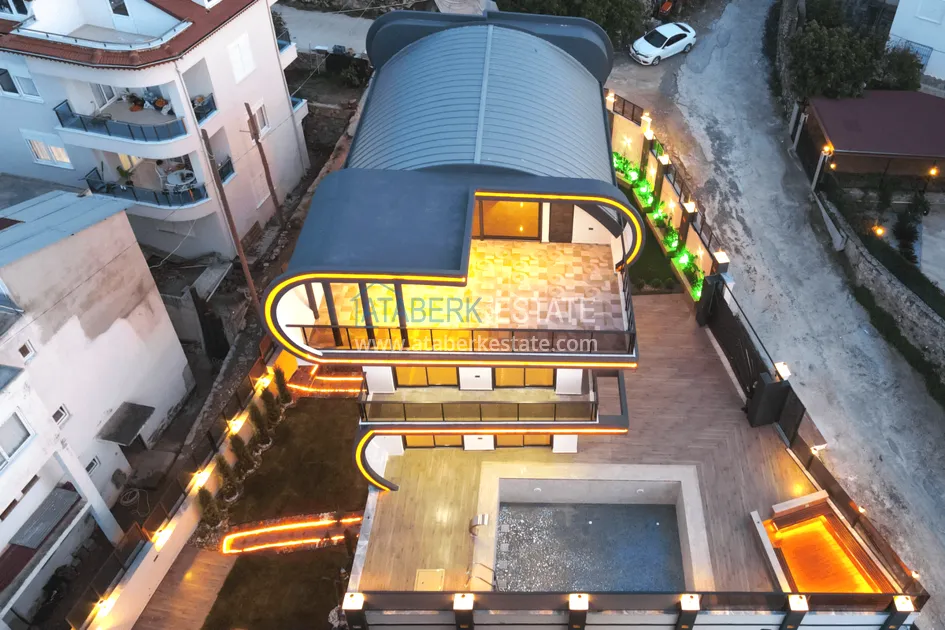 В элитном районе Алании – Каргыджак, расположен эксклюзивный комплекс вилл, состоящий из двух частных домов. К продаже представлена только одна вилл планировки 5+1, площадью 515 м2 с прилегающей частной территорией. Вилла трехуровневая, имеет потрясающие видовые характеристики, элегантный архитектурный стиль и дизайн. До побережья Средиземного моря 1,2 км, в 100 метрах находится ближайший супермаркет, также в 100 метрах есть школа.