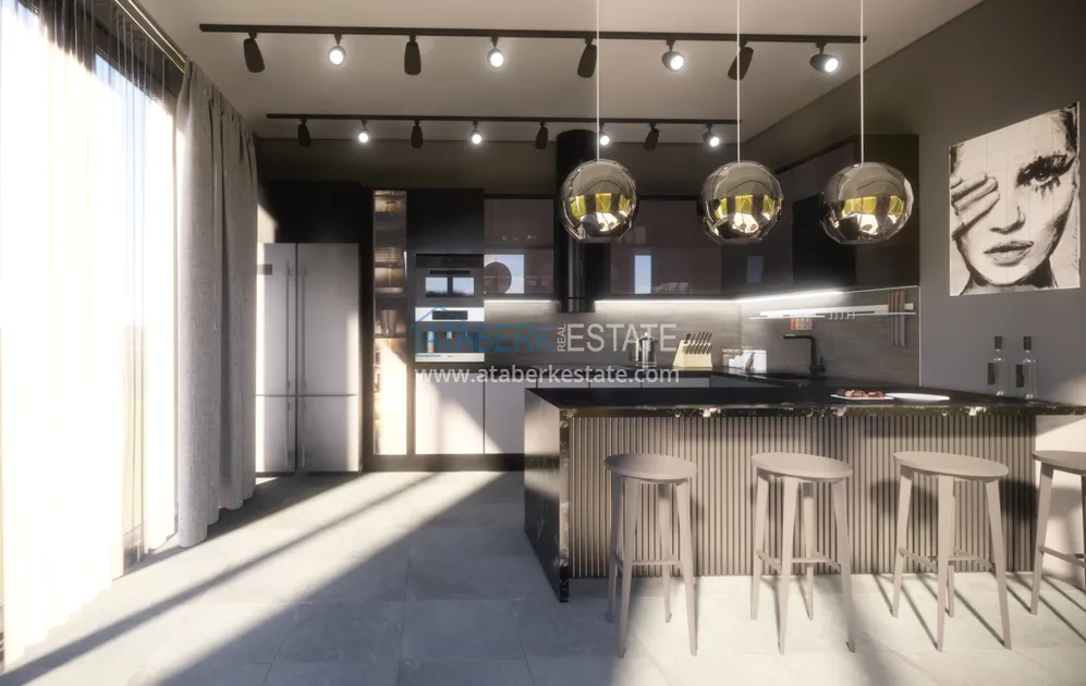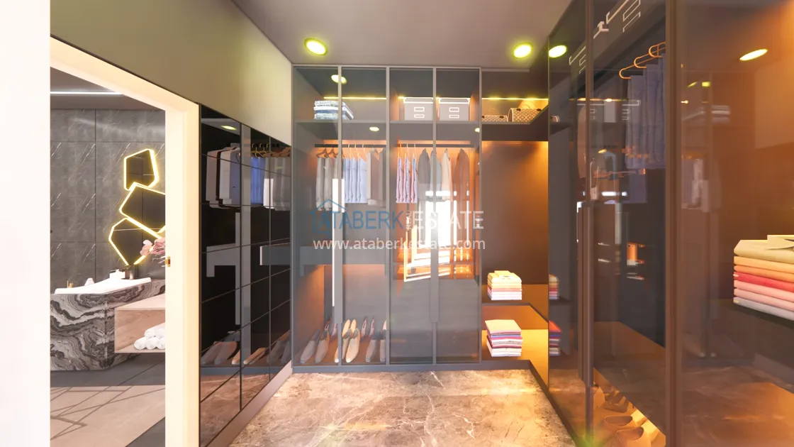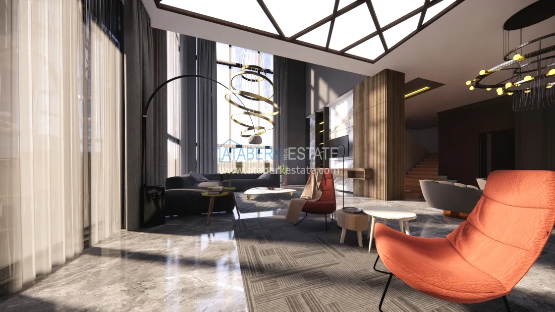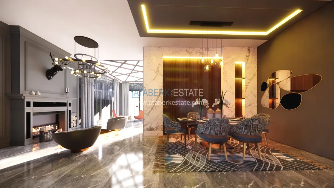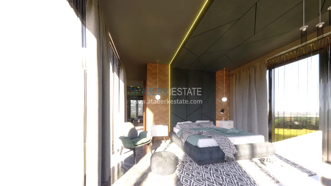В проекте 2 виллы. К продаже представлена трехэтажная вилла с личным бассейном и частной территорией, планировки 5+1 площадью 450 м2. Технические характеристики: полная чистовая отделка, встроенная кухонная мебель, укомплектованные санузлы, система напольного отопления. А также светодиодное освещение на территории и система видеонаблюдения по всему периметру.