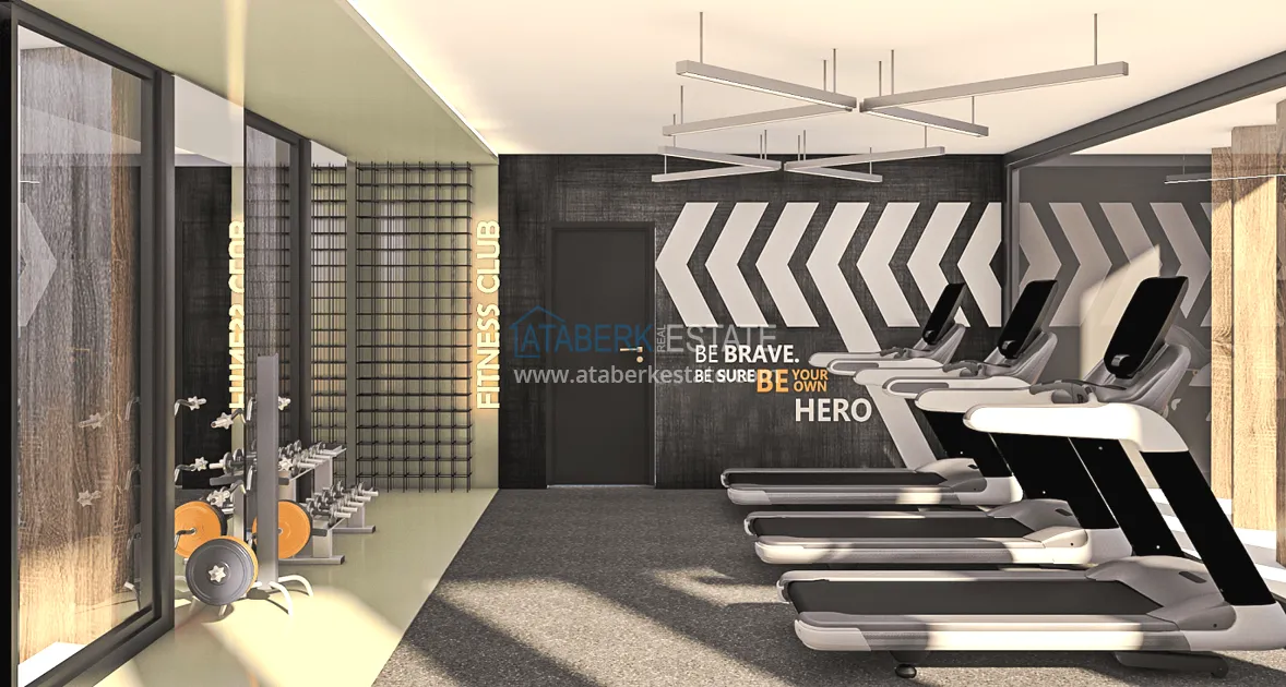 2 этаж (1 kat plani) NET 131 м2 BRUT 215 м2 – фитнес, бильярд зона, три спальни, два гардероба, два санузла, терраса 35 м2.