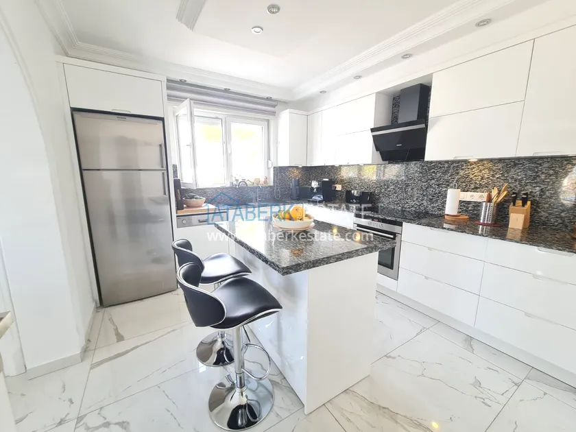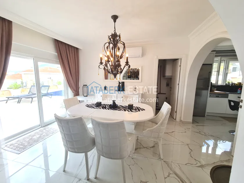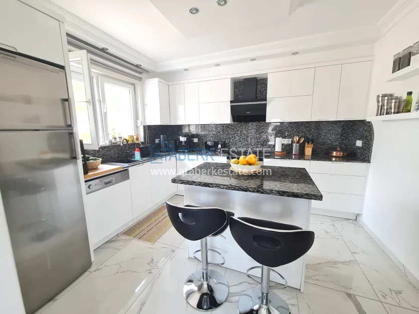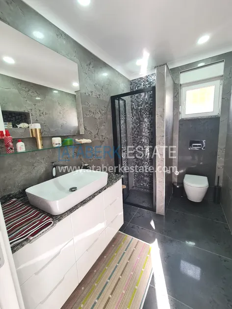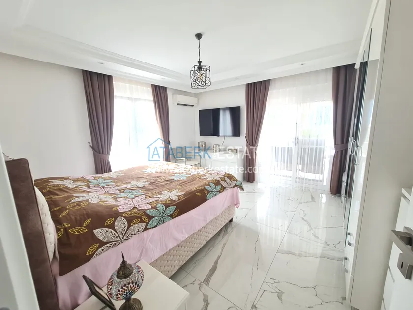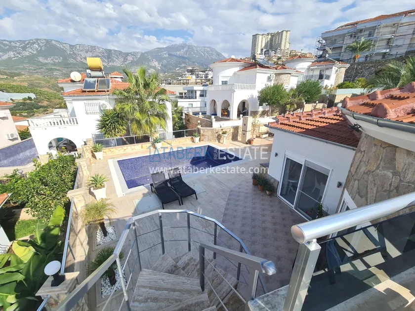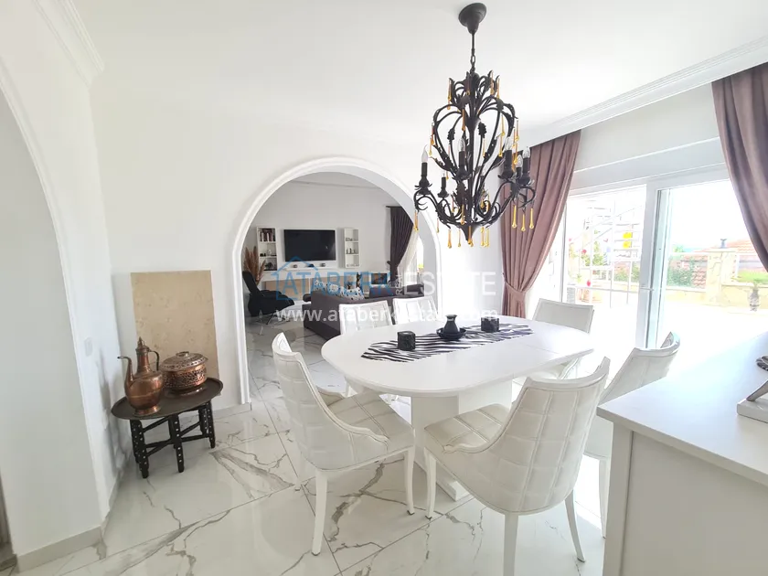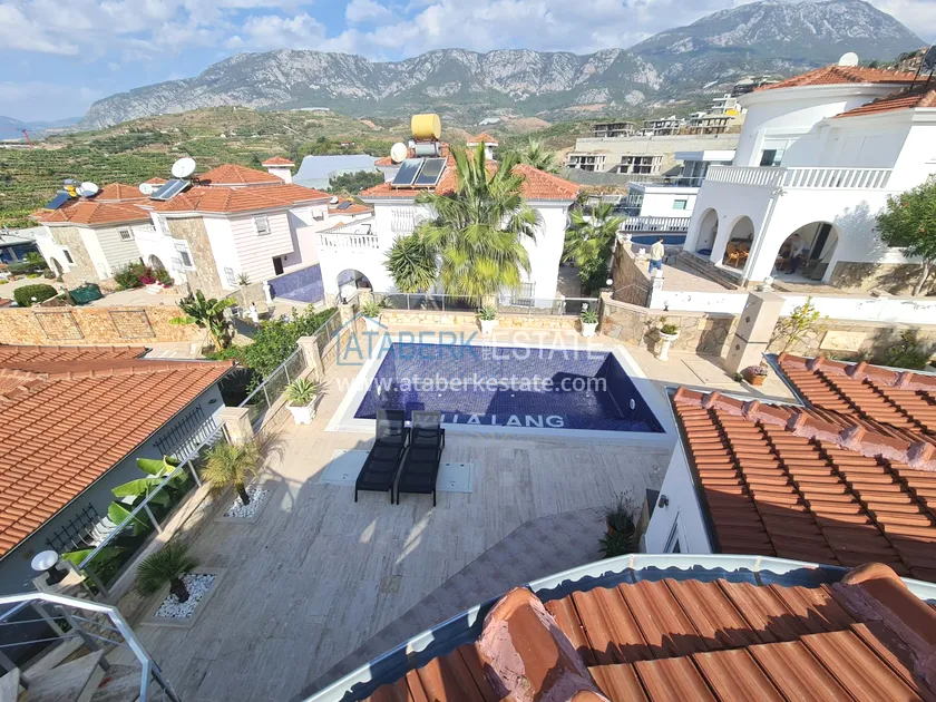 Частный придомовой участок дома составляет 400 м2, обеспечивая вам достаточно пространства для комфортного проживания и отдыха. Общая площадь дома – 290 м2, два этажа, планировка 3+1. Удобная и продуманная планировка делает виллу идеальной для жизни большой семьи. Она имеет три изолированные спальные комнаты - просторные и светлые, отдельную кухню с обеденной зонной, гостиную с камином, для создания уютной атмосферы. Также вас приятно удивит специальный дизайн террасы и горячая каменная стена. На каждом этаже предусмотрена ванная комната, есть кладовая. К тому же на втором этаже есть просторный открытый балкон с панорамным видом на море, горы и окрестности. В доме выполнен стильный ремонт, установлена качественная мебель, бытовая техника и сплит-система. И Вы будете в восторге от собственного бассейна и частного гаража, что добавляет удобства вашей жизни. А также по периметру установлена система видеонаблюдения для вашего спокойствия.