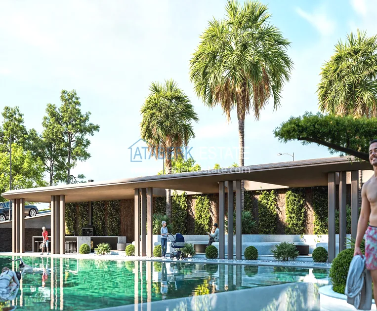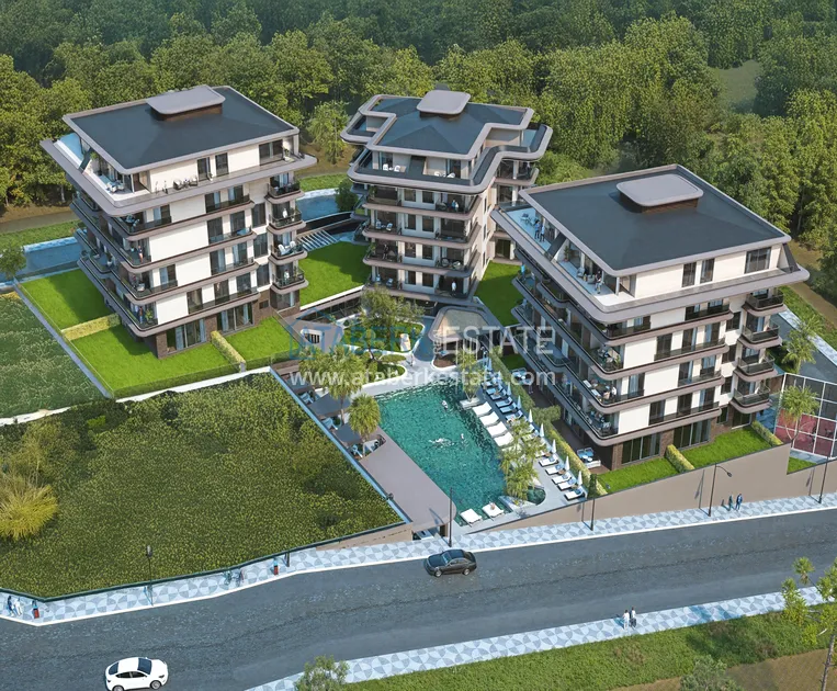 В одном из самых спокойных и зелёных районов Алании реализуется современный жилой проект, который рассчитан на тех, кто ценит комфорт, функциональность и современную архитектуру без перегруженности. Данный формат недвижимости выбирают за перспективу роста стоимости, комфорт будущего проживания и продуманную концепцию. Жилой комплекс строится на участке площадью 5 000 м² и состоит из трёх современных блоков, всего 54 квартиры. Территория закрытая и благоустроенная, с полноценной инфраструктурой курортного уровня. Архитектура комплекса выполнена в спокойной современной эстетике и органично вписана в природное окружение. До моря около 500 метров, дорога до центра Алании занимает не более 10 минут на автомобиле, а сама локация ценится за стабильный спрос и инвестиционную привлекательность.