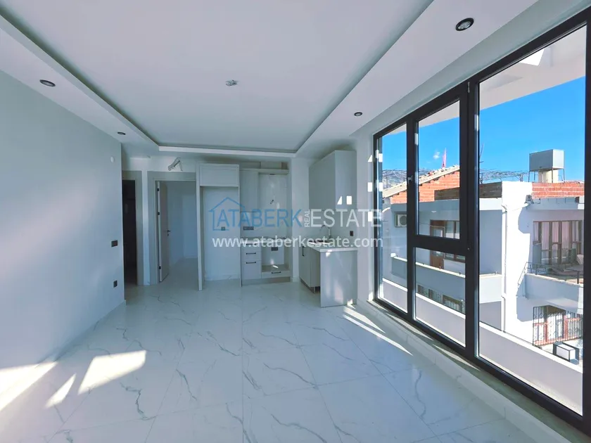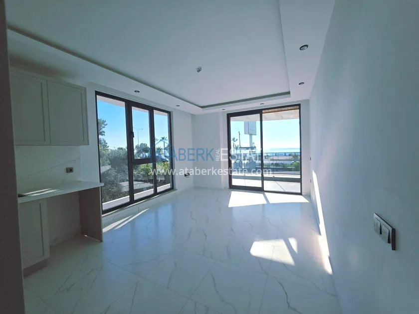 Квартира планировки 1+1 расположена на 1 этаже, общая площадь составляет 55 м². Пространство организовано с акцентом на свет и обзор: просторный салон с широкой кухней американского типа объединён в единое функциональное пространство, предусмотрены спальня, ванная комната и балкон. Апартаменты продаются без мебели, с выполненной чистовой отделкой, что позволяет оформить интерьер по собственному вкусу. Главное преимущество - полноценный открытый вид на море и крепость Алании, который сохраняется благодаря первой береговой линии.
