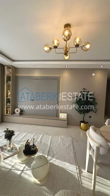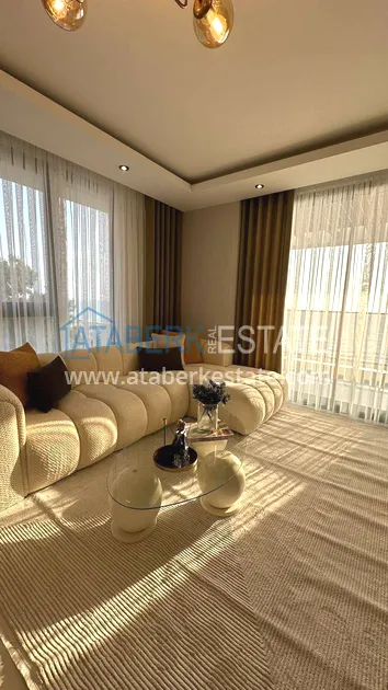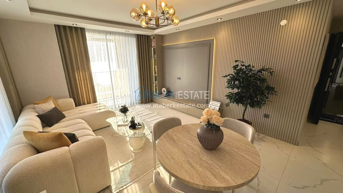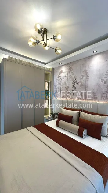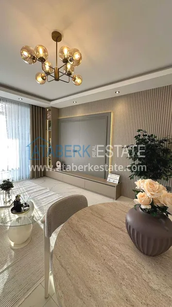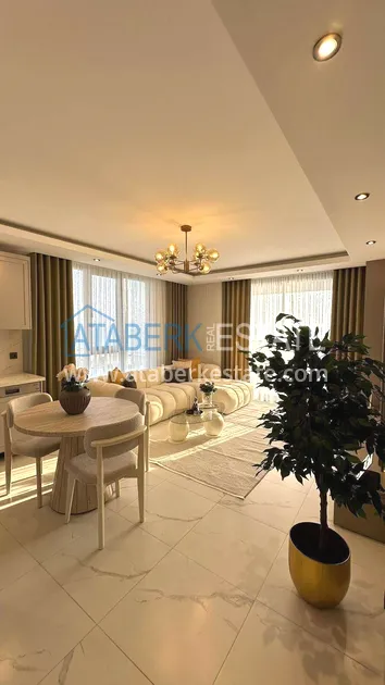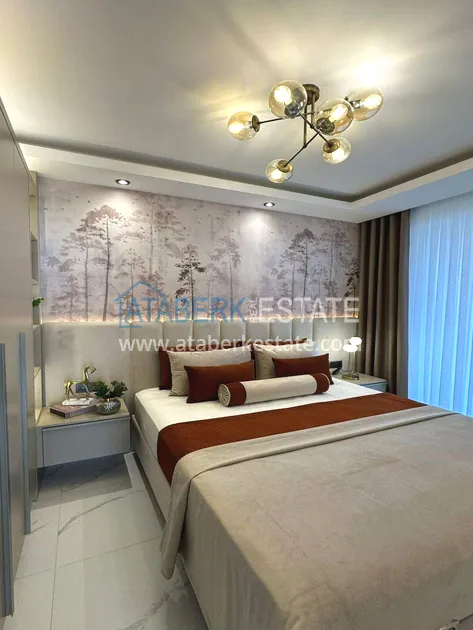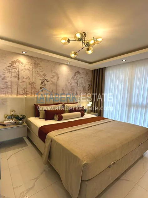 Квартира планировки 1+1 расположена на 4 этаже, общая площадь составляет 55 м². В планировке - просторный салон с широкой кухней американского типа, спальня, ванная комната и балкон. Главное преимущество - полноценный открытый вид на море и крепость Алании, который раскрывается с высоты этажа. Апартаменты продаются меблированными, интерьер аккуратный и функциональный, что позволяет использовать квартиру сразу после покупки без дополнительных вложений.