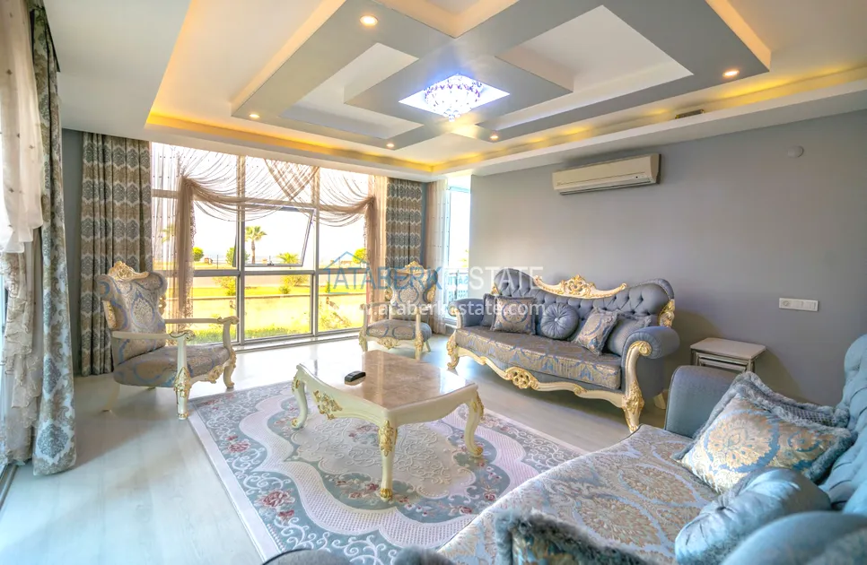 Прекрасная резиденция расположена на первой береговой линии в уютном пребрежном районе, Кестель. Данный район, как и сам комплекс, отлично подходит как для отдыха, так и постоянного проживания. На территории жилого комплекса есть отличная инфраструктура, к пляжу можно пройти по подземному переходу. Айдат – 300 лир в месяц.
