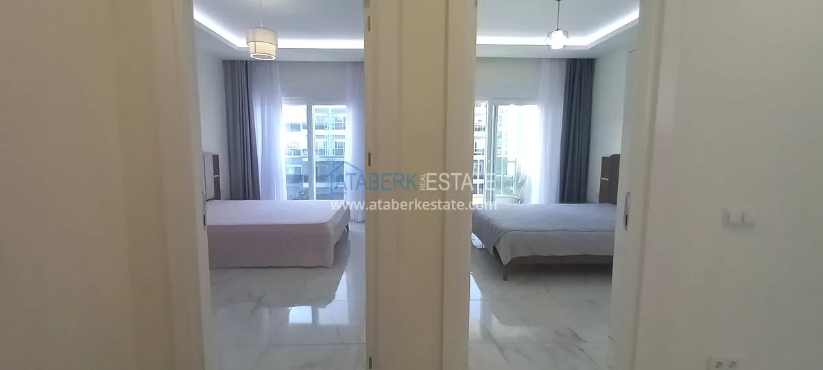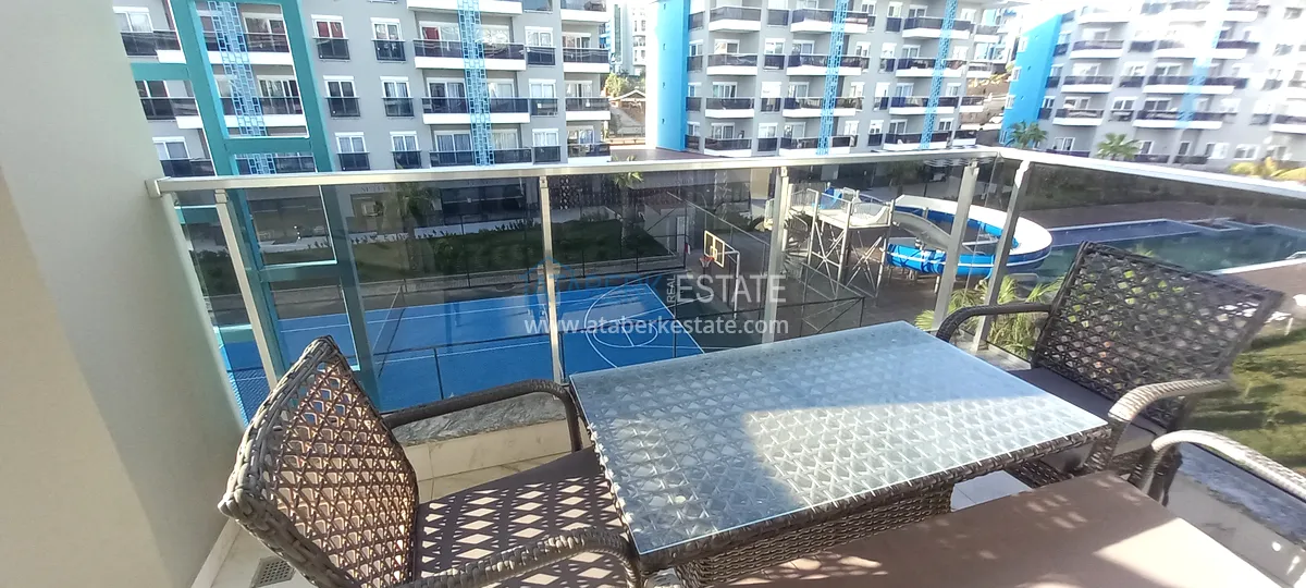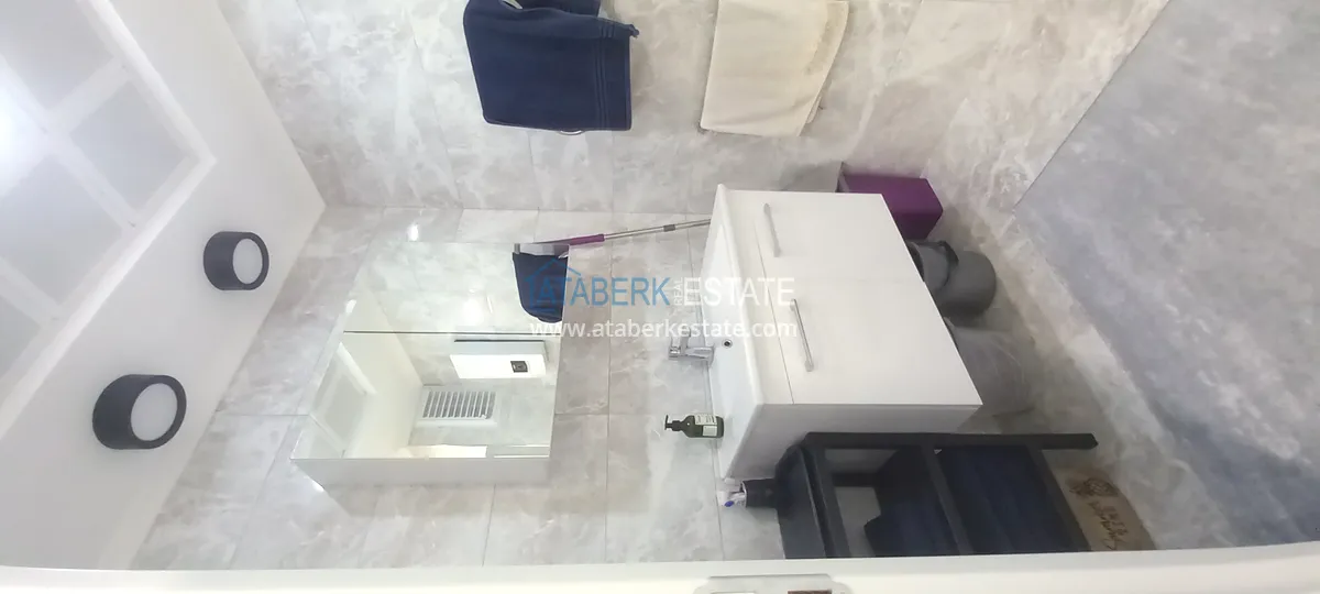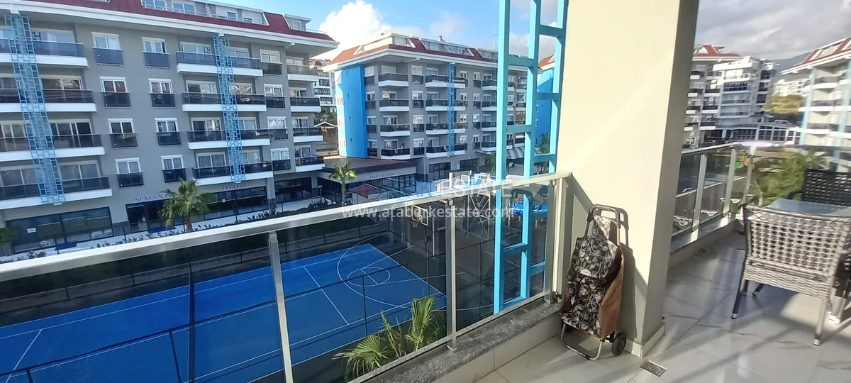 Предлагаемая квартира была объединена из двух – 1+1 и 2+1, этаж расположения второй, общая площадь составляет 120 м2. На данной площади разместились салон, совмещенный с кухней американского типа, 3 спальни, 2 санузла и один просторный балкон с видом на территорию комплекса – бассейн. В ванных комнатах установлена система теплый пол. Недвижимость выставлена на продажу в том виде, который представлен на фото.