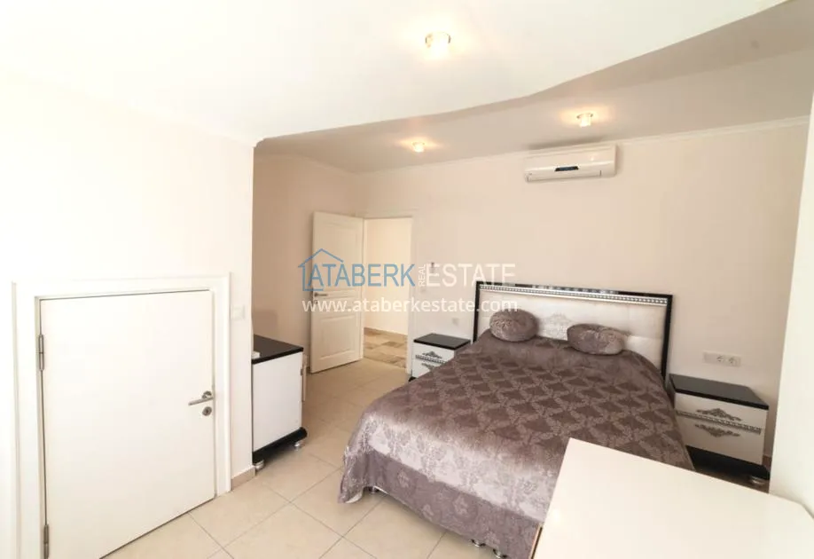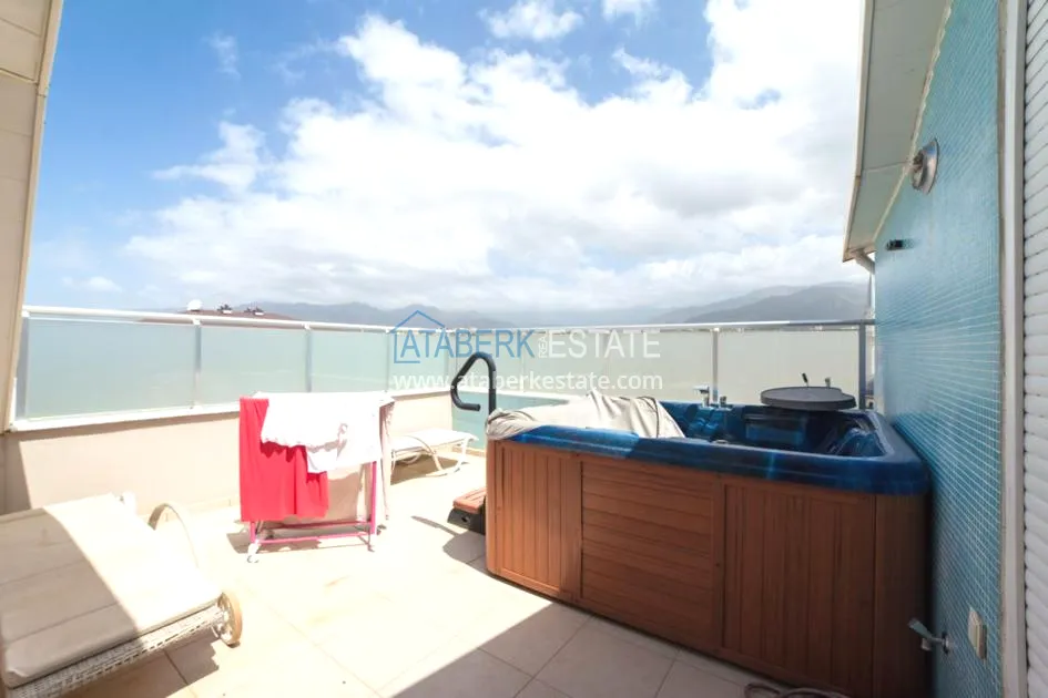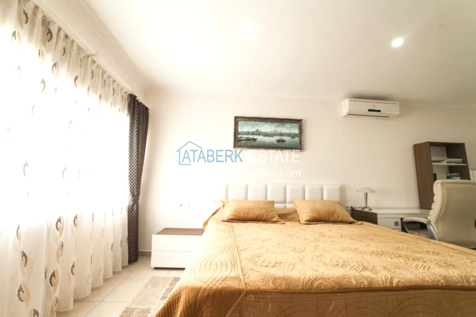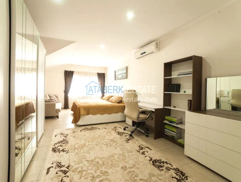 Шикарный двухуровневый пентхаус занимает верхние два этажа пятиэтажного здания, планировки 4+1 общей площадью 250 кв.м. На первом этаже расположена прихожая, просторная гостиная, кухня американского типа, санузел, кладовая, гостевая комната и балкон с выходом из всех комнат. На второй этаж ведет лестница с детским защитным барьером (ворота безопасности). Второй этаж занимают три спальные комнаты, отдельный санузел и ванная комната в хозяйской спальне, открытая терраса с джакузи. В ванных комнатах подогрев полов, в каждой комнате кондиционер, видеодомофон, система нагрева воды от солнечной энергии, теплостойкие стены, жалюзи на окнах стальная входная дверь, напольное покрытие – керамическая плитка, на балконах установлено наружное освещение, проведены спутниковое ТВ и Wi-Fi. Квартира продается со всей мебелью и техникой (как на фото), что существенно сократит ваши расходы.