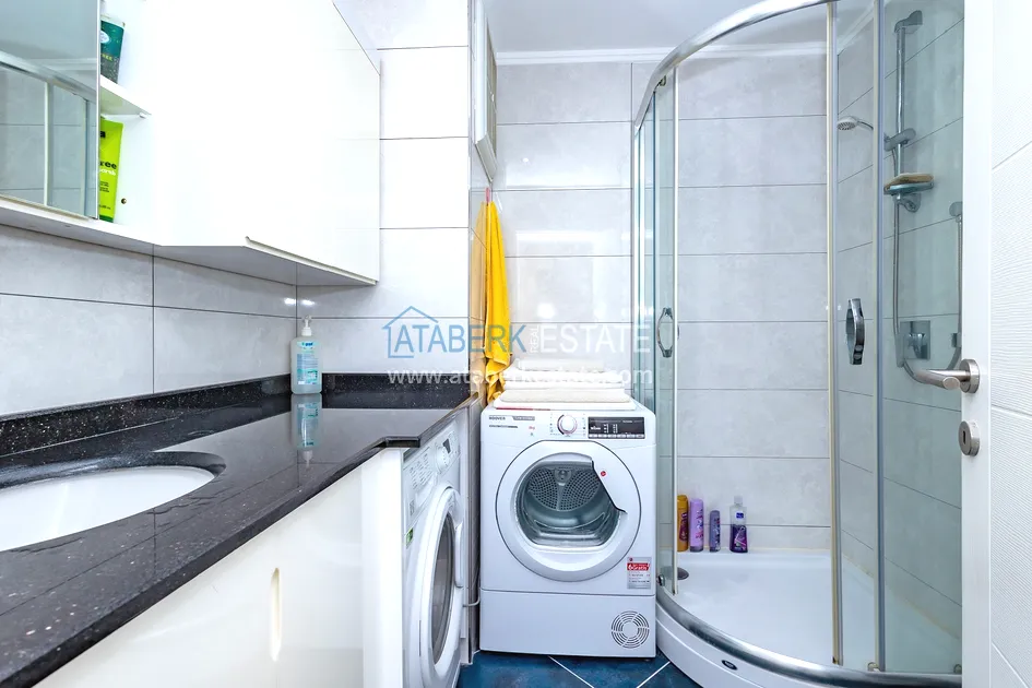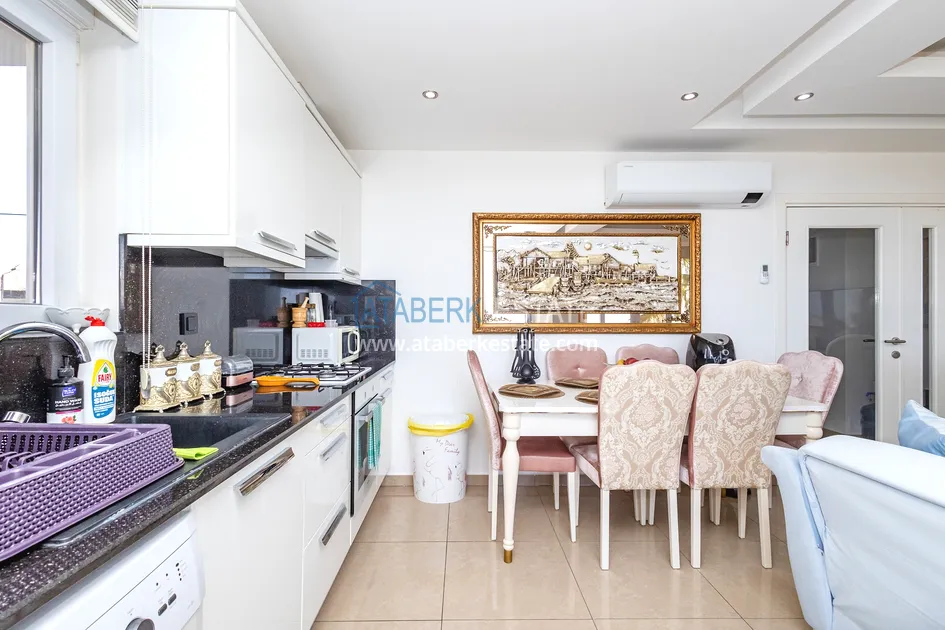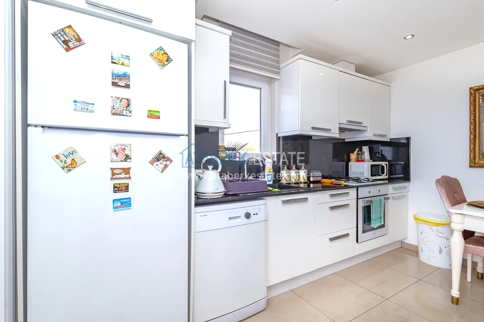 Предлагаемая квартира планировки 2+1 площадью 110 м2, этаж расположения первый турецкий, ориентирована на северо-восток и запад. В квартире есть гостиная, объединенная с кухней открытого типа, две просторные спальни, две ванные комнаты и два балкона с видом на море. Одна из спален, переоборудована в полноценный рабочий кабинет. Недвижимость выставлена на продажу в том виде, который представлен на фото. Мебель высокого качества от Istikbal. Во всех комнатах кондиционеры и полы с подогревом, на окнах двойное остекление.