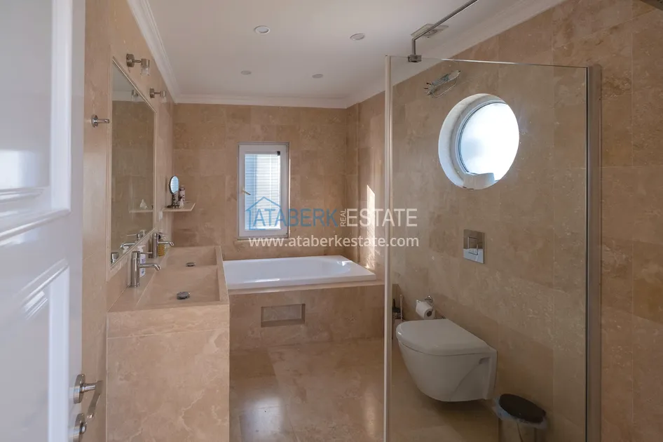 Вилла двухэтажная планировки 4+1. Удобная и продуманная планировка делает дом идеальным для жизни большой семьи. Спальные комнаты изолированные, просторные и светлые. Открытого типа кухня со столовой зоной, на каждом этаже есть ванная комната, большие террасы с красивыми видами, небольшие балкончики с выходом из спален, есть мебель и бытовая техника, установлены кондиционеры. Вилла выставлена на продажу в том виде, который представлен на фото.