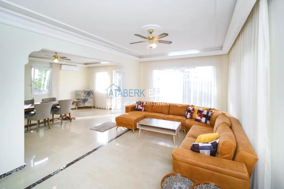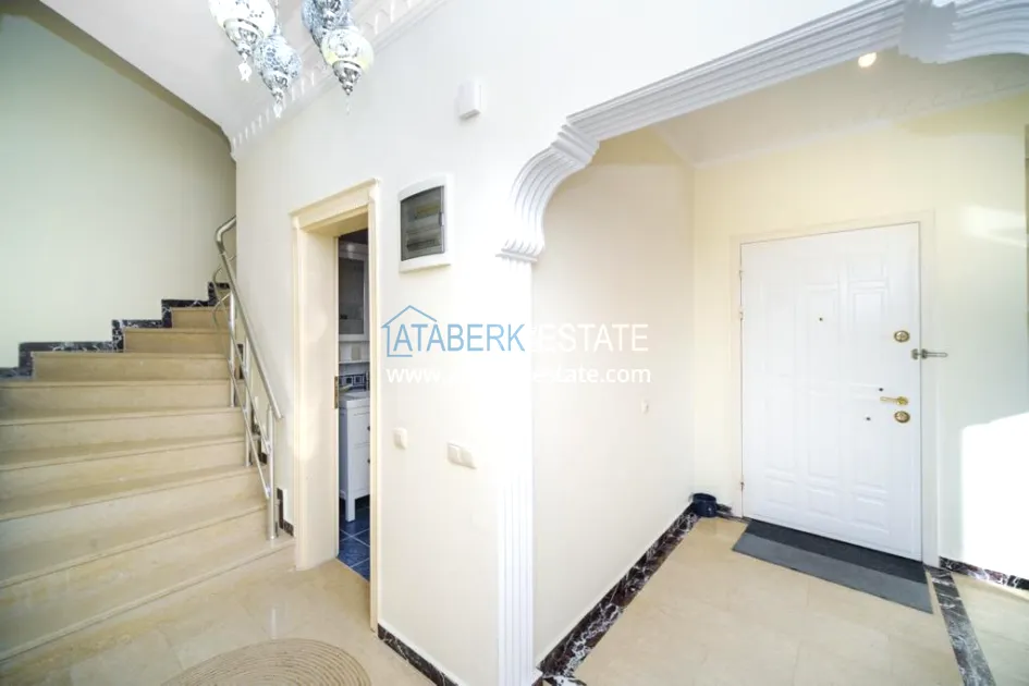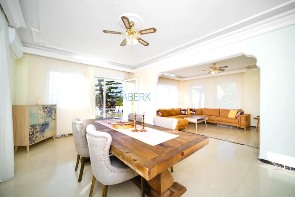 Дом двух этажный, продается полностью с мебелью и техникой, имеет планировку 3+1 площадью 220 м2, площадь прилегающей территории составляет 618 м2, есть частная парковка. В данную планировку входит: салон, кухня отдельного типа, три спальни, две ванные комнаты и открытая терраса.