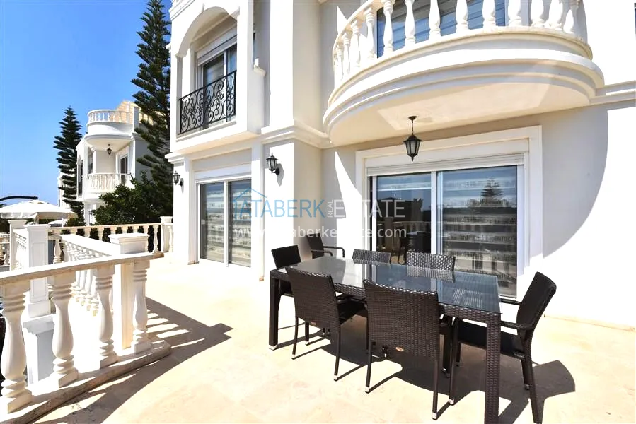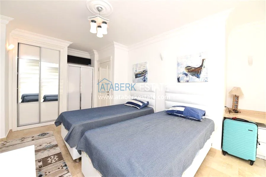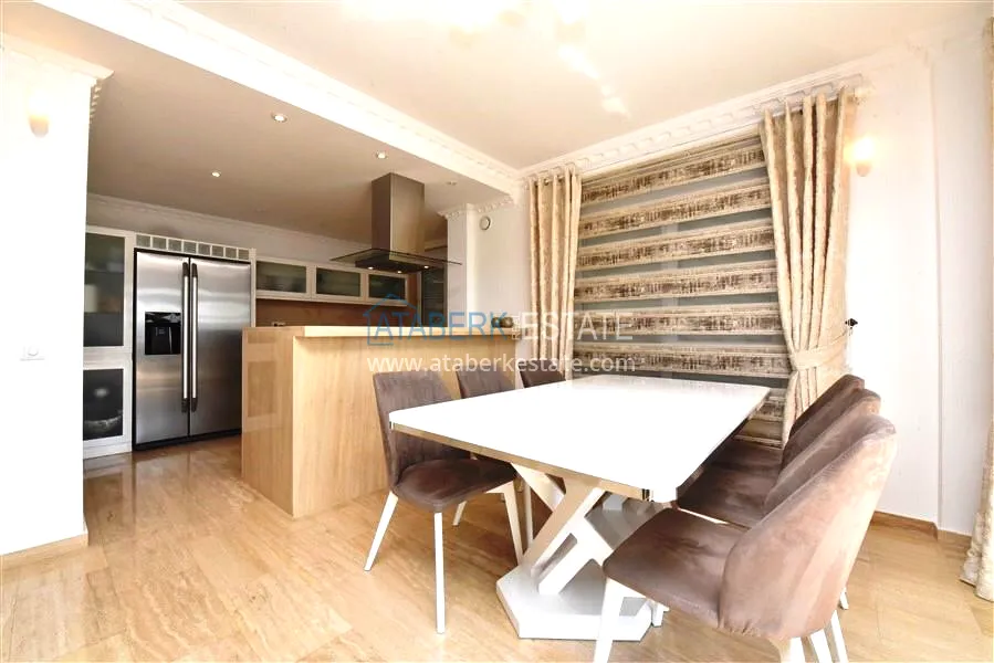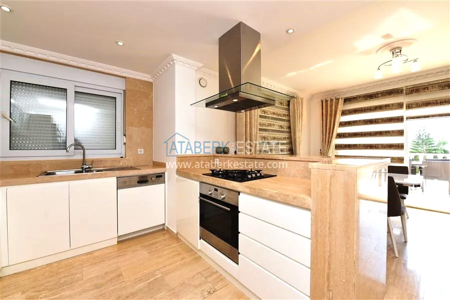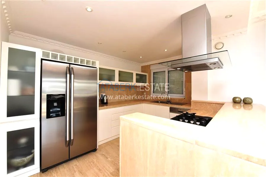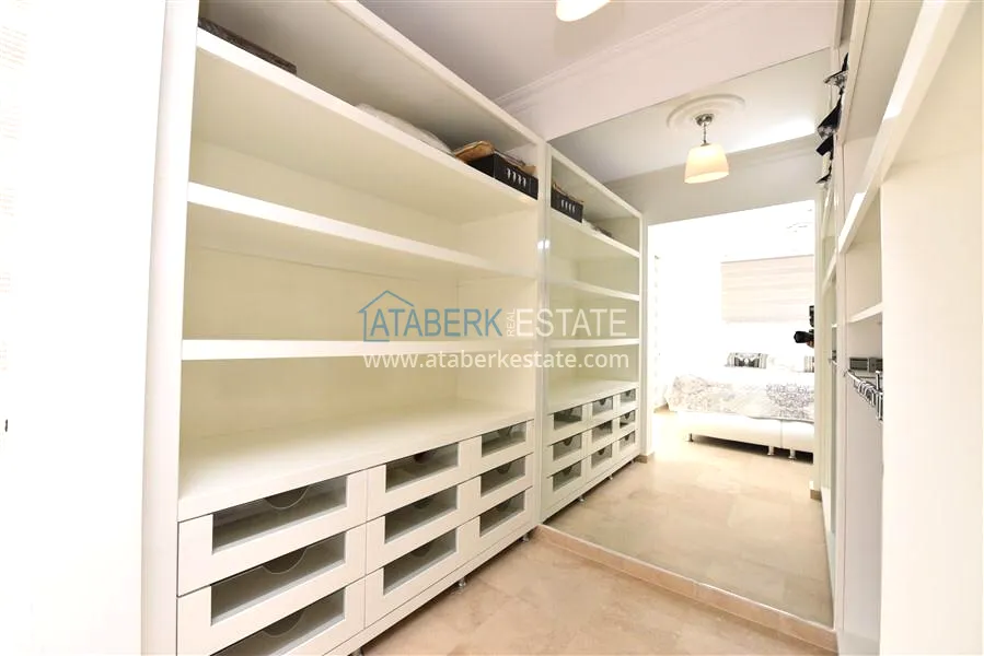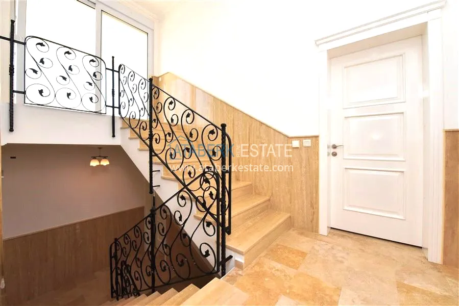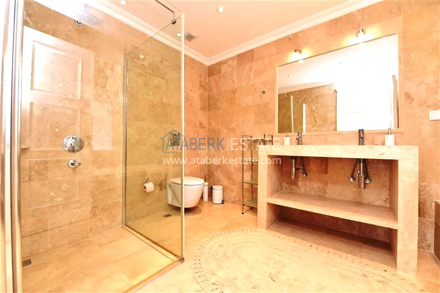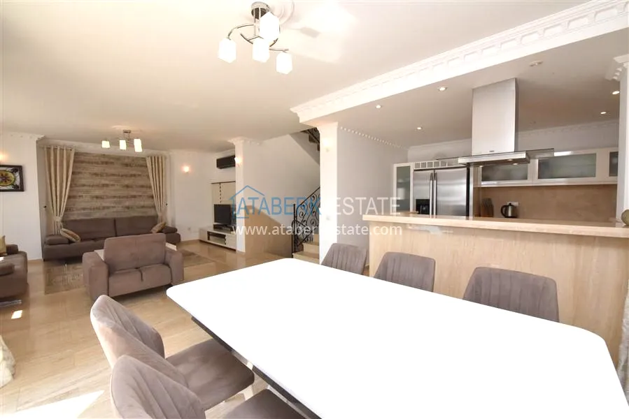 Это современный элегантный трехэтажный дом, расположен в престижном поселке Конаклы, всего в 400 метрах от песчаных пляжей.