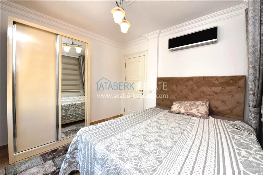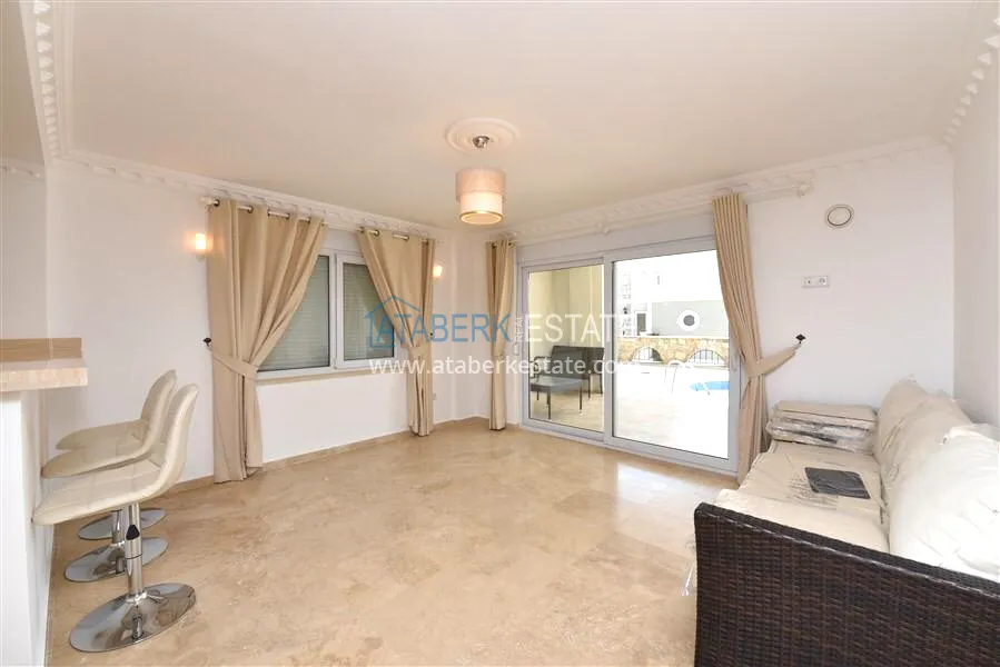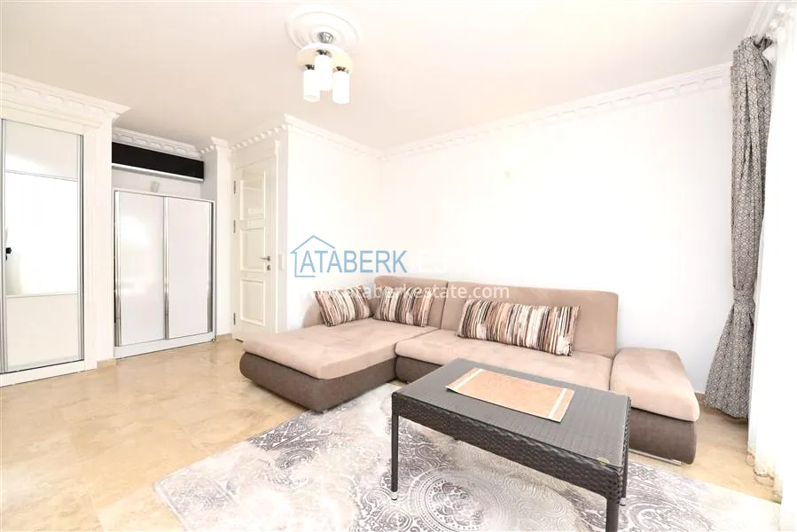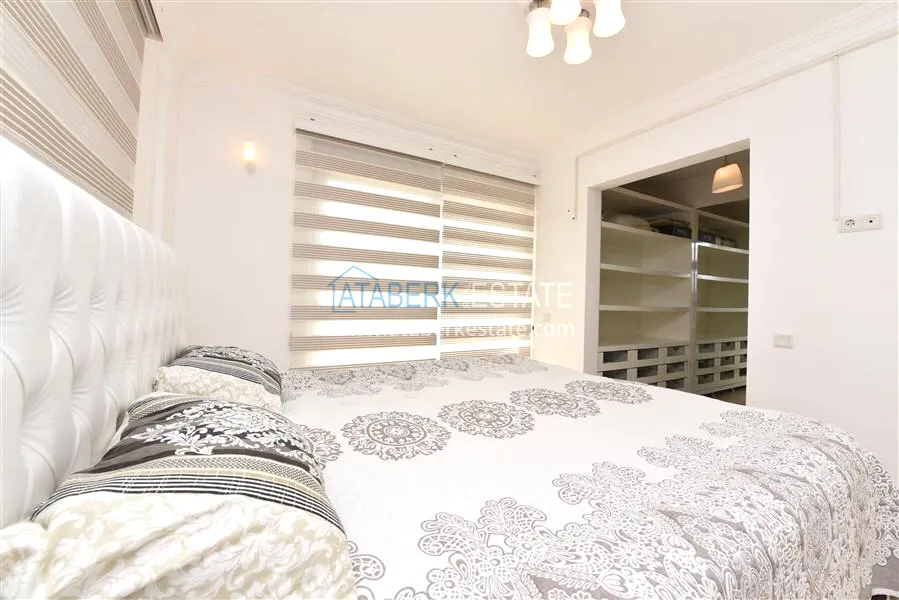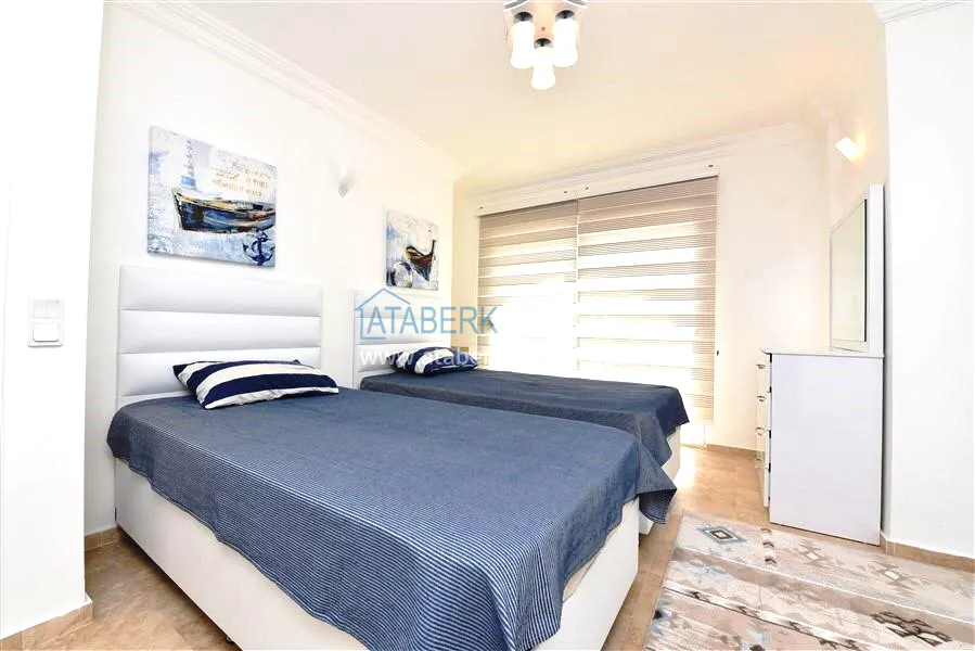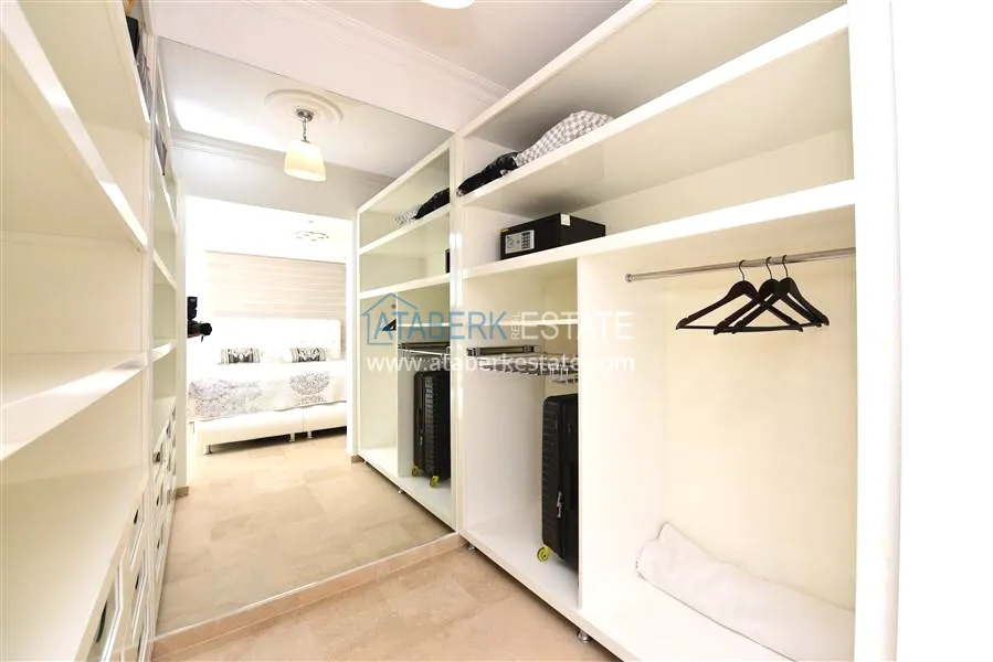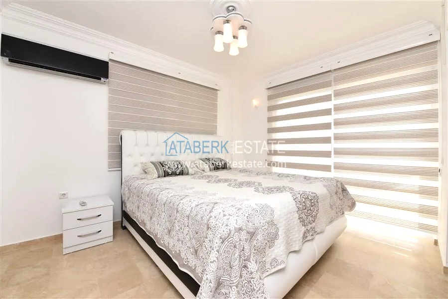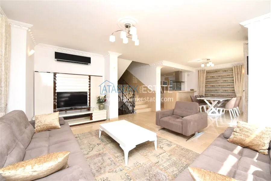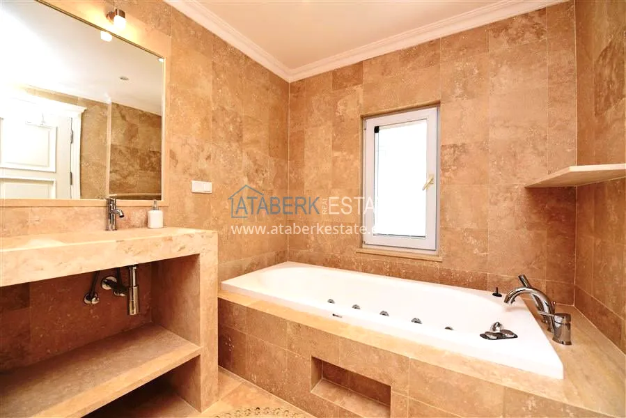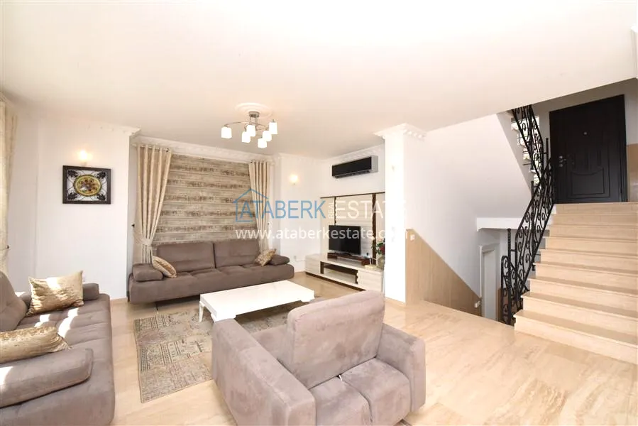 Это современный элегантный трехэтажный дом, расположен в престижном поселке Конаклы, всего в 400 метрах от песчаных пляжей.