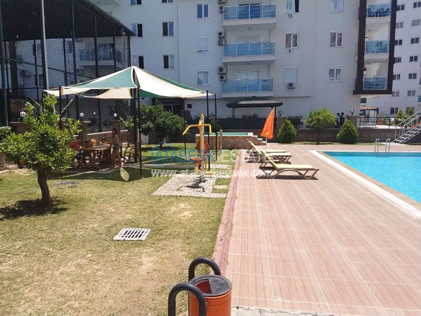 Квартира 1+1 расположена на 8 этаже и имеет общую площадь 60 м2 представляет собой уютную гостиную с кухонным уголком , спальной комнатой, террасой с которой открываются удивительные виды на юго-западную Аланию и ухоженную территорию комплекса.