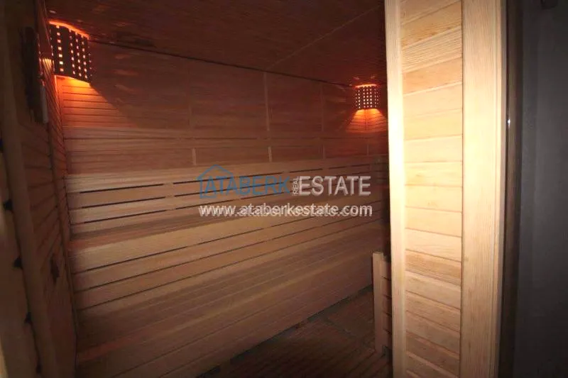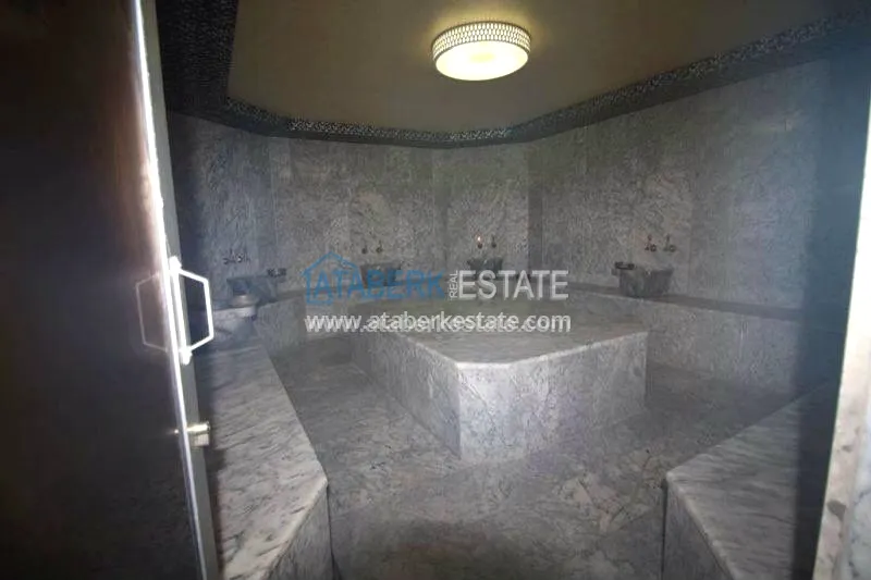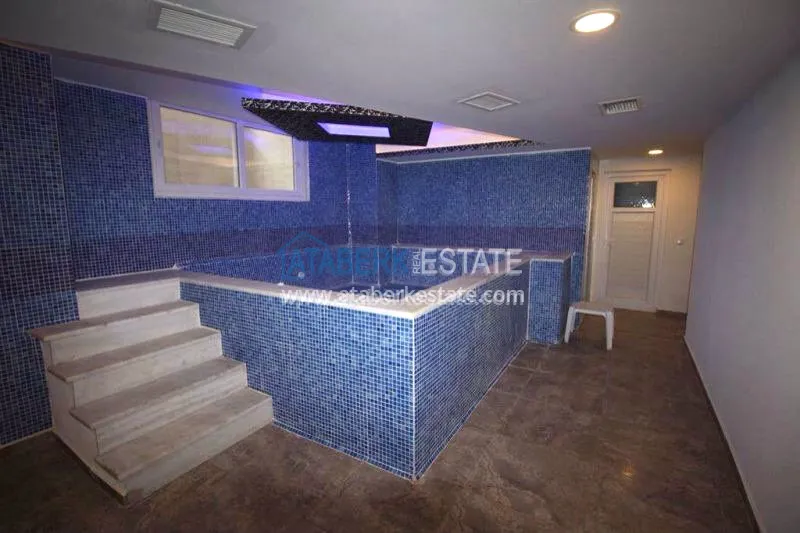 Квартира находится на 4 этаже и занимает площадь 120м2 просторными холлом, который ведет в гостиную комнату с кухонным уголком американского типа оформленную в контрастных тонах белого и черного, 2 спальные комнаты, 2 ванные и 2 балкона-террасы(как на фото). Квартира имеет кафельное покрытие полов, кондиционеры.