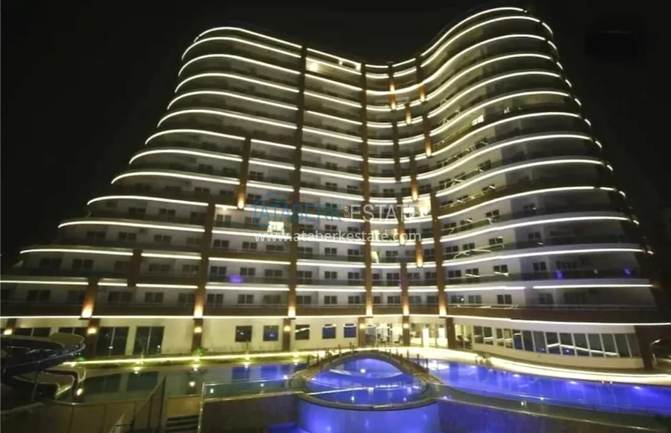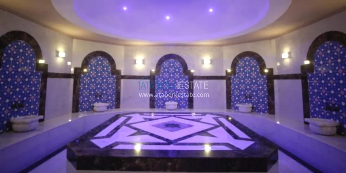 Оригинальный жилой комплекс, который сочетает в себе множество плюсов и инноваций, расположен в 5-6 минутах ходьбы от набережной, на улице Ататюрка. По близости находятся сетевые супермаркет Бим и Шок, аптеки, городская поликлиника, пекарня, большой Мигрос, остановки общественного транспорта. По субботам в 200 метрах проходит фермерский рынок. В комплексе хорошо развита инфраструктура, установлены мощные солнечные батареи и система выработки электроэнергии от солнца - экологически чистые бесплатный источник энергии, что существенным образом снизило издержки по обслуживание комплекса (айдат). Работает служба сервиса. К тому же в комплексе есть выход на верхнюю террасу, откуда открывается потрясающий вид на всю Аланью, горы, море и крепость Кале. 90% собственников в комплексе русскоговорящие и 10% европейцы.