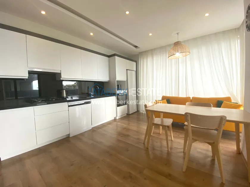 Квартира расположена на 5 этаже, общая площадь составляет 95 м2. Планировка 2+1 представляет собой: салон, совмещенный с кухней американского типа, 2 спальни, ванную комнату и балкон. В квартире установлена система теплый пол. Недвижимость выставлена на продажу со всей мебелью и техникой, всё как на фото.