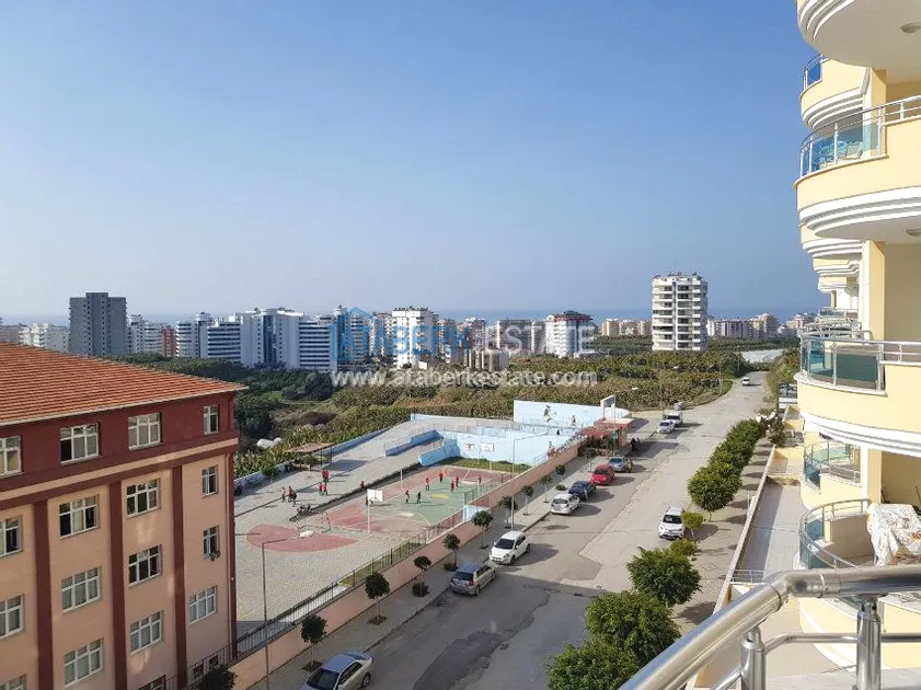 Планировка квартиры общей площадью 130 м2 представляет собой салон с зоной американской кухни, две спальные комнаты, две ванные комнаты и два балкона.