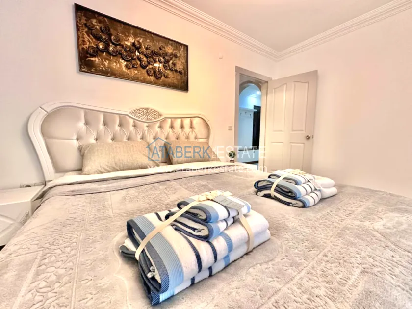 Предлагаемая недвижимость находится на первом этаже, ориентирована на запад, общая площадь составляет 140 м2. В планировку входит: прихожая, гостиная, совмещённая с кухней открытого плана, две спальни, две ванные комнаты и два балкона. Продаётся в том виде, в каком представлено на фото.