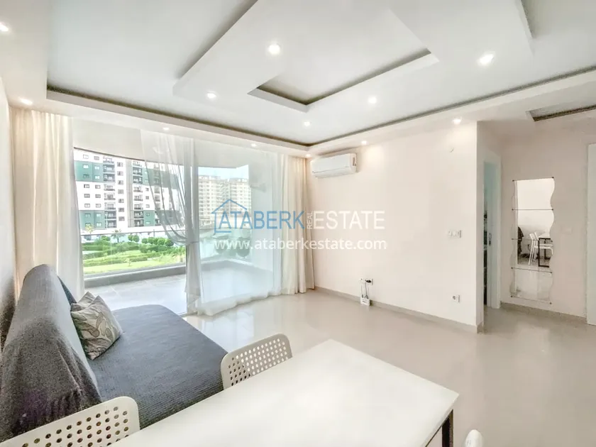 Предлагаемая недвижимость планировки 1+1 находится на 1 этаже, общая площадь составляет 55 м2. В планировку входит: салон, совмещённый с кухней открытого плана, спальня, ванная комната и балкон с видом на бассейн. Квартира выставлена на продажу со всей мебелью и техникой, как на фото.