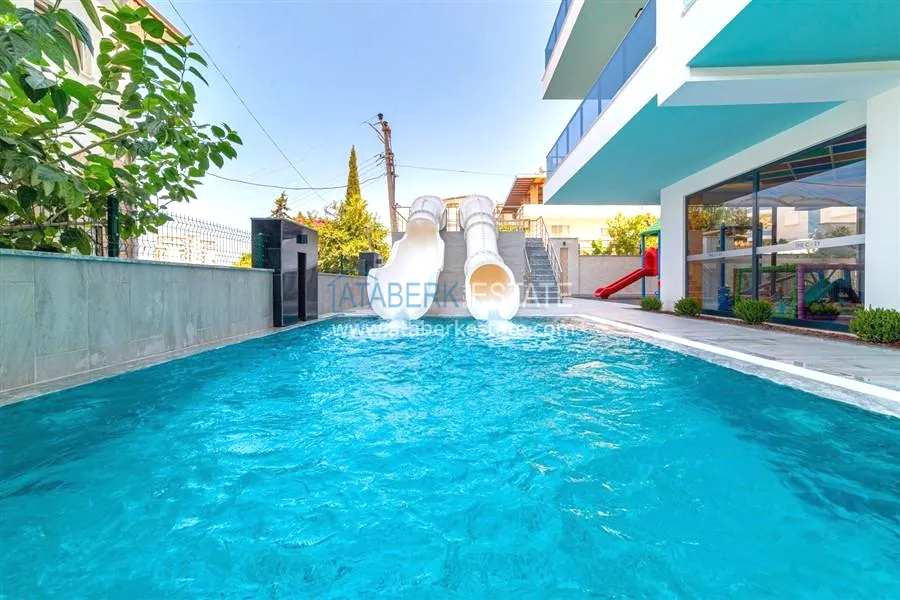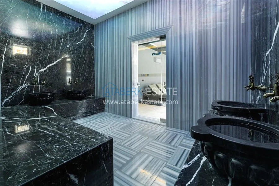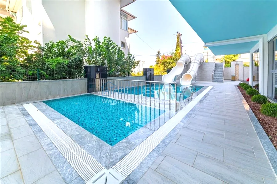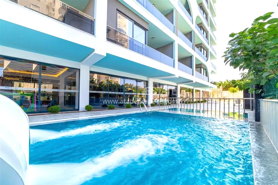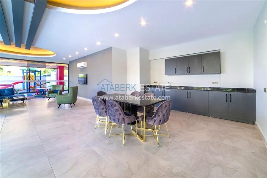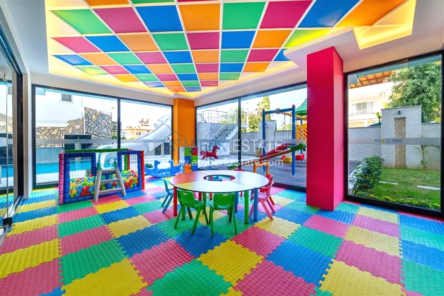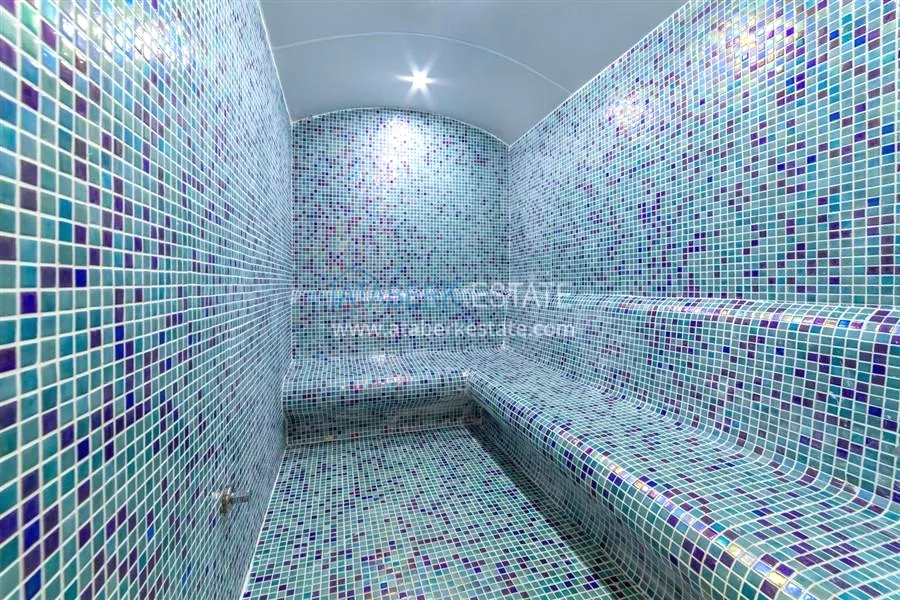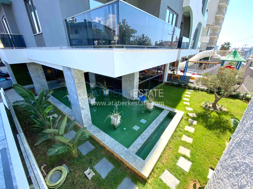 Комплекс представляет собой один жилой блок высотой в 10 этажей с развитой инфраструктурой и ухоженной территорией. Здесь вас ждут комфорт, безопасность и идеальное место для отдыха. Айдат составляет 1350 лир в месяц. ЖК расположен в 800 метрах от Средиземного моря, а ближайший магазин находится всего в 300 метрах.
