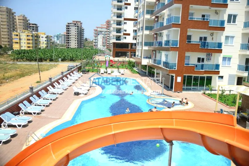 Новая квартира 2+1 в комплексе с богатой инфраструктурой в активно развивающимся районе Алании Махмутлар. Жилой комплекс занимает обширную территорию, находится на 3 линии от моря, в отличие от большей части зданий в Махмутларе, вокруг комплекса нет слишком плотной застройки, нет чувства, что один дом заглядывает в окна другого. На территории комплекса в распоряжении жильцов :