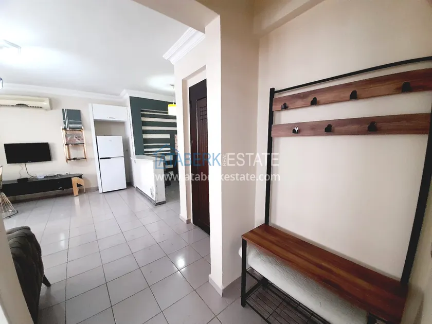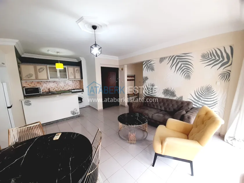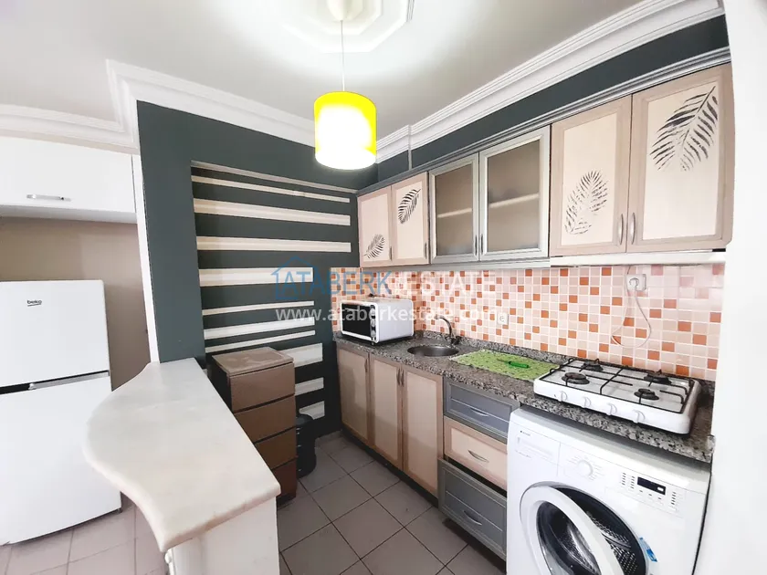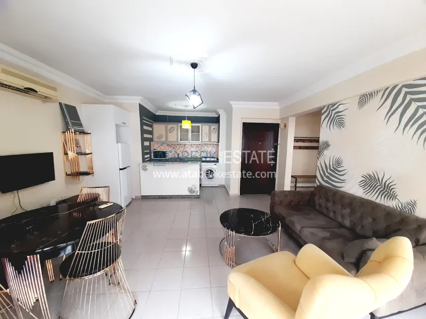 Апартаменты планировки 1+1 расположены на 3 этаже, ориентированы на восточную сторону. Включают салон, совмещенный с кухней открытого типа, одну спальню, ванную комнату и просторный балкон с боковым видом на море. Квартира полностью меблирована и оснащена бытовой техникой, установлены кондиционер и водонагреватель – все готово для вашего комфортного проживания.