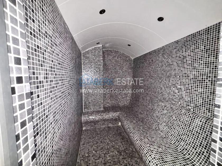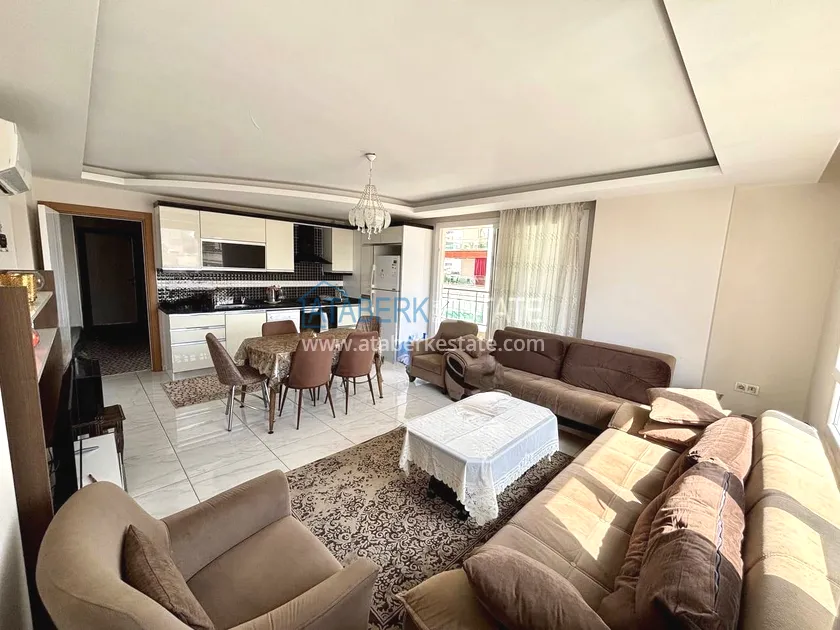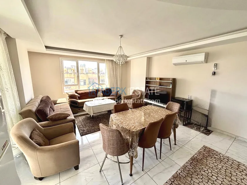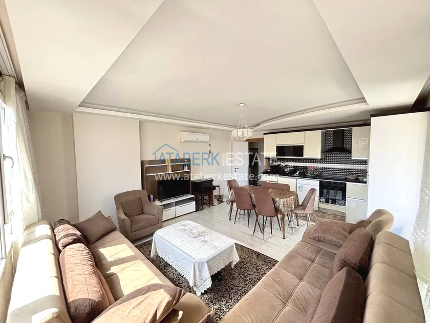 Квартира планировки 2+1, расположена на 4 этаже (по высоте соответствует 6-му, благодаря цокольной части здания), с ориентацией на юго-восток. Общая площадь — 120 м². Пространство включает: просторную гостиную с кухней открытого типа, две спальни, два санузла, два балкона и отдельное кладовое помещение. Квартира предлагается полностью меблированной — в отличном состоянии, чистая и ухоженная.