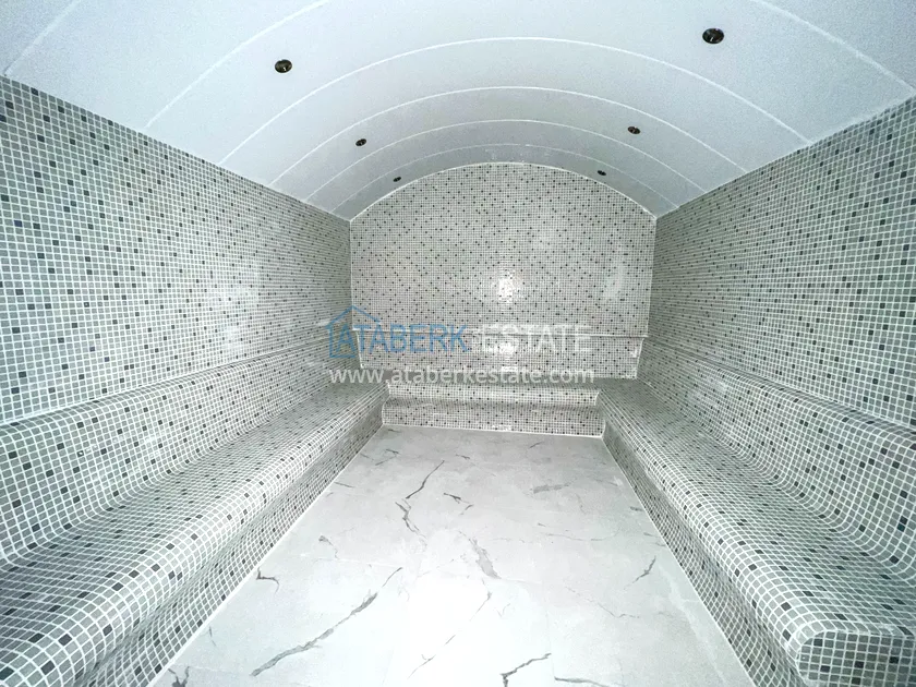 Полностью меблированная квартира планировки 2+1 расположена на 11-м этаже и ориентирована на юг — благодаря этому в помещениях всегда много света, а с окон открываются красивые виды на Средиземное море и городскую панораму. Общая площадь составляет 75 м2 (brüt). Планировка включает салон с кухней открытого типа, две спальни, ванную комнату и балкон. Квартира предлагается в продаже с полным комплектом мебели и техники — готова к проживанию или сдаче в аренду без дополнительных вложений.