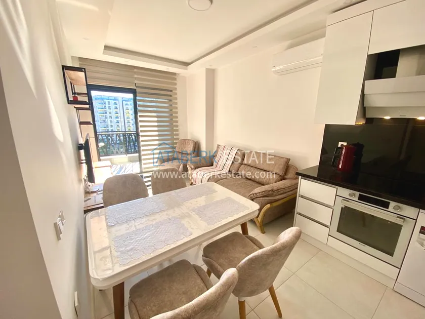 Квартира планировки 1+1 общей площадью 50 м² расположена на 9 этаже. В её планировке предусмотрены салон с кухней открытого типа, отдельная спальня, ванная комната и балкон. Жильё предлагается с мебелью, что позволяет будущему владельцу сразу заехать и пользоваться всеми удобствами без дополнительных вложений.